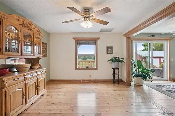 Nestled on 11.5 acres of picturesque countryside, this Cape Cod-style hobby farm offers a perfect blend of charm, functionality, and rural tranquility. The stately home features a full covered front porch that welcomes guests into beautifully appointed living spaces, including a formal dining room, family room with wood and tile flooring, and convenient first-floor laundry. The luxurious primary suite on the main floor includes a walk-in closet, separate shower, and jetted tub, while upstairs lies a bonus landing area surrounded by two sizable bedrooms and a full bath. Outdoor amenities are equally impressive--featuring an historic 1886 Amish-built barn, fenced pastures, and run-through stalls, making the property instantly ready for equestrian pursuits or small-scale farming. A three-car pole barn garage with dual roll-up doors provides exceptional workspace and storage. A relaxing back deck overlooks the land, complete with an above-ground pool and hot tub--ideal for unwinding after a day outdoors. Modern comforts are well-integrated, with both forced-air propane heating and an efficient gasification wood heating system, designed to reduce energy costs significantly. Additionally, the property presents opportunities for wildlife enthusiasts--trophy deer are frequently sighted on the wooded portions of the acreage.