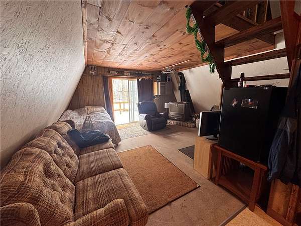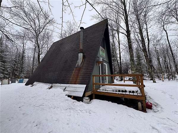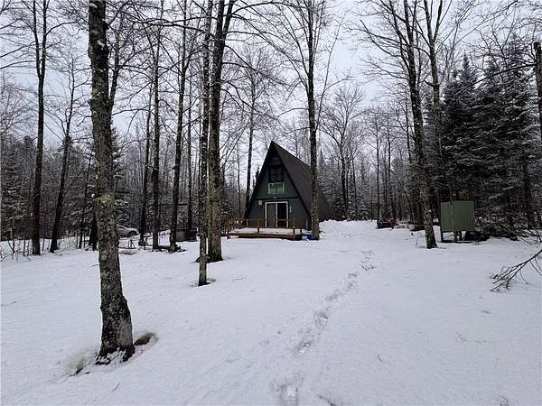 Great opportunity to finally land an affordable property in the great Northwoods! This property is surrounded by many lakes and ATV/Snowmobiling trails, making it a great location for any kind of recreational activities you may be into. The lot itself provides beautiful hard woods that provide an almost serene backdrop in the fall. Its tucked back on a private road, providing the just the peace you may be looking for. The A frame features a beautiful wood deck that was replaced within the last 3 years. The property also has a rainwater catch system in place, providing water by pump to an outdoor shower and indoor sink. With a large bedroom, and even more sleeping space upstairs - this property would make a killer hunting headquarters. There are plenty of wildlife roaming around the area - no shortage deer or bear. If you're looking for affordable with potential for sweat equity, this may be the ticket. The home provides a wood stove that heats the place in no time. An upgraded electric meter also serves the property. Schedule your showing today!