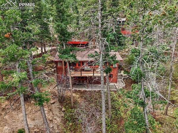 Perched high within one of Colorado Springs' most storied mountain enclaves-originally established as a private retreat for Colorado College professors and notable figures seeking inspiration above the city-this 1909 residence offers a rare blend of history, privacy, and possibility. Set along the slopes of Cheyenne Mountain, View of the Broadmoor & minutes to Cheyenne Mountain Zoo, the setting delivers a unique balance of seclusion and access to world-class amenities. Winding roads, towering pines, and a sense of intentional placement define this intimate setting, where mornings begin with native birdsong echoing through the trees, wildlife moves quietly through the landscape, and evenings give way to glowing city lights stretching endlessly across the plains below. From its elevated position, the property captures a truly immersive sense of peace, privacy, and connection to the natural surroundings-an environment that feels both grounded in history and removed from the pace of modern life. Held within the same family for over 70 years, the home spans two separate parcels conveyed together, with the additional parcel offering flexibility for potential future use, subject to buyer investigation and community guidelines. The lower level presents a charming, fully separate living space with its own entrance-complete with a kitchenette, bedroom w/ fireplace, inviting living room, and dining area-creating an ideal setting for extended stays, guests, or potential short-term rental of six months minimum, all wrapped in a warm, storybook-like ambiance. Completing the offering is exceptionally rare parking for the area, featuring two separate two-car garages plus additional x2 outdoor parking spaces-an uncommon and highly valuable amenity in this location. Rich in character, history, setting, and opportunity, this is a legacy property ready to be thoughtfully reimagined, & carried forward into its next chapter, "Welcome HOME"