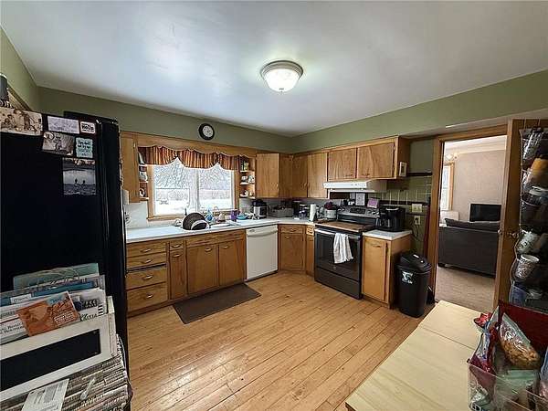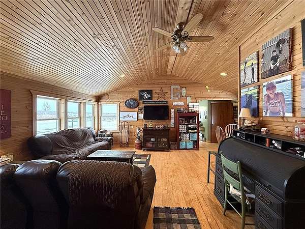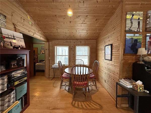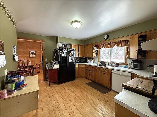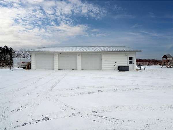 Set on 6.83 picturesque acres just off a tar road, this one story rural property offers the perfect blend of space, privacy, and versatility. Surrounded by an established grove, this home provides a peaceful country setting while remaining easily accessible. Inside, you're welcomed by a spacious open living room and formal dining area, ideal for everyday living or entertaining guests. The kitchen offers ample cabinetry and room to add an island, while a separate informal dining area flows seamlessly into a vaulted, cabin style great room that adds warmth and character. The main level features three bedrooms and two bathrooms, including a conveniently located 3/4 bath near the garage entrance--perfect for cleaning up after outdoor work or hobbies. Original hardwood floors highlight the charm of this 1950s era home. The lower level offers excellent potential for additional living space, whether you envision a family room, fourth bedroom, laundry area, or expanded storage. Car enthusiasts and hobbyists will appreciate the attached oversized three stall garage, as well as the detached, insulated and heated three car garage--ideal for vehicles, boats, ATVs, or workshop use. The detached garage also includes a finished office or hobby room, providing flexible space for work or recreation. With room to roam and exceptional storage options, this property offers a rare opportunity to enjoy country living with practical amenities. Schedule your showing today.