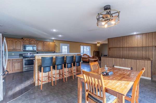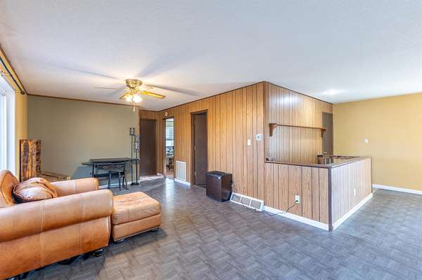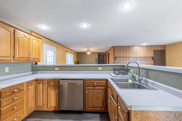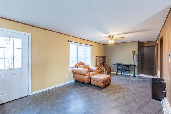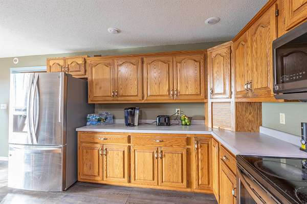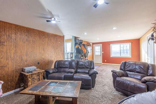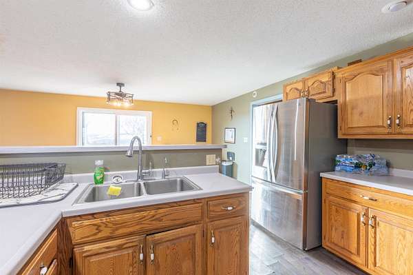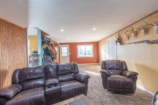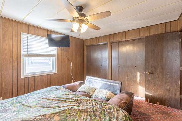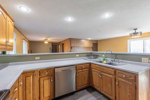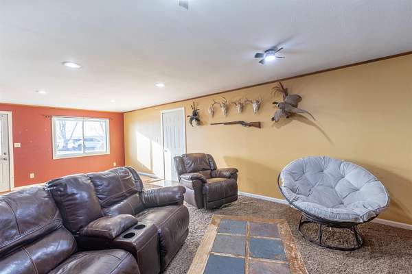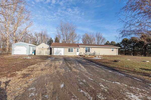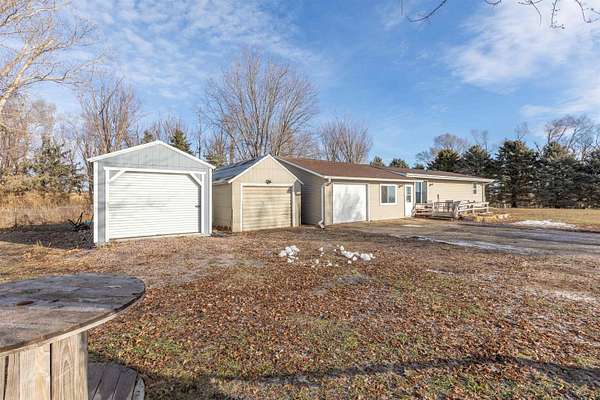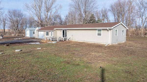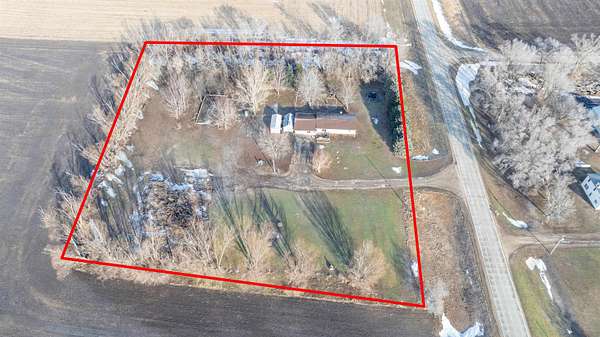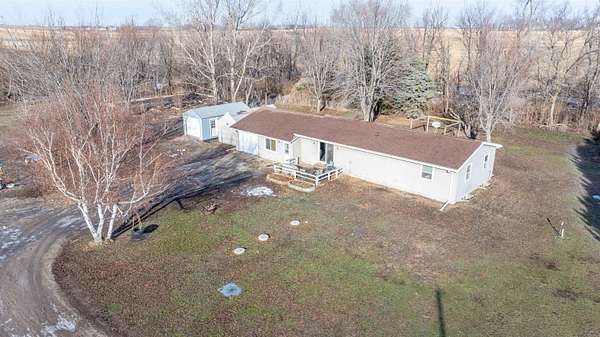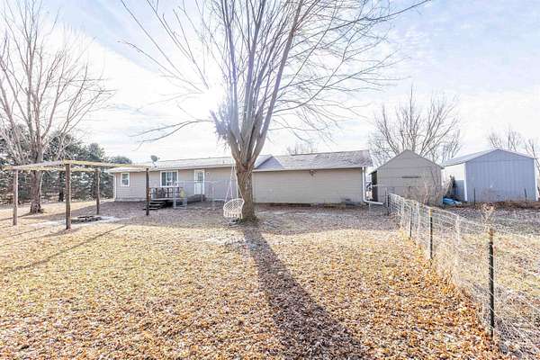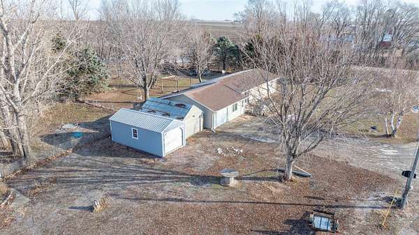 2.5 acres on a hard surface road located outside of Hospers. The home is 4 bedrooms with potential for a 5th bedroom by adding an egress window. Main floor has an open concept allowing sight lines to the dining and living area from the kitchen. Stainless steel appliances are a nice touch in the kitchen and the laminate flooring makes for easy clean up. 2 bedrooms and a full bath are found on the main level with remaining bedrooms in the basement. The 3/4 bath on the lower level contains the laundry, water softener and water heater for the home. Washer/dryer are included. When the home was originally built, it had a 2 car attached garage. A previous owner converted one stall of that garage to a cozy family room with an electric fireplace. Storage is abundant both in and outside the home at this acreage. The 2 sheds are included with the property. The backyard has one area completely fenced with a built in pond that can be drained as needed. Remaining backyard includes a designated fire pit space. The seller added fruit trees in the front yard across the lane: 2 apple and 2 cherry. Heating source is an electric heat pump that was new in 2018 and carries a transferrable 10 year warranty. The acreage has a well, but is not hooked up. Drinking water is rural water. Gutters are fitted with leafguard. The roof was new in 2011 per seller disclosures from the listing in 2018..