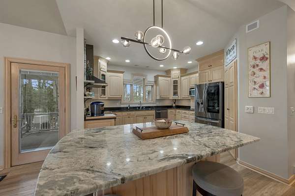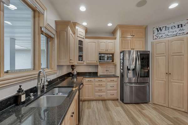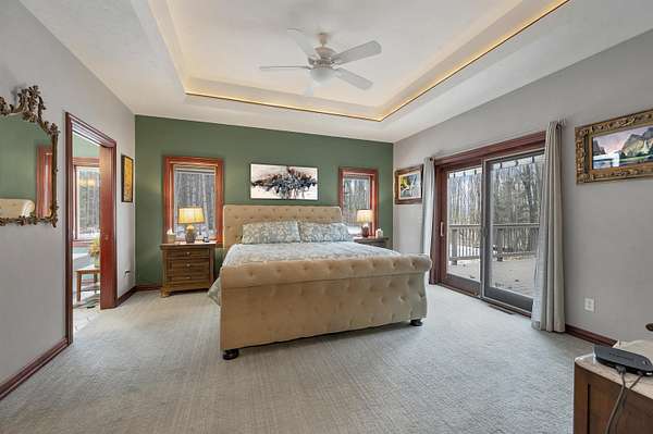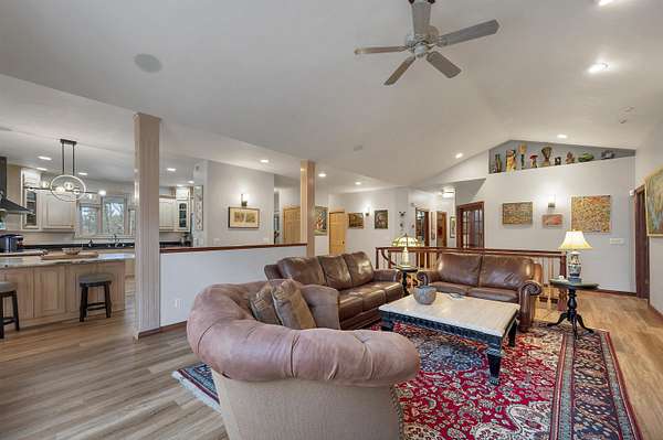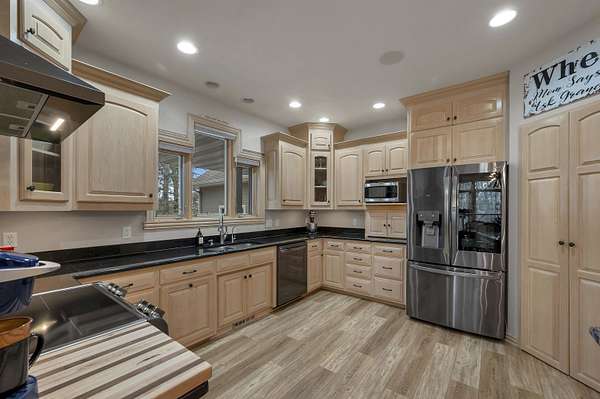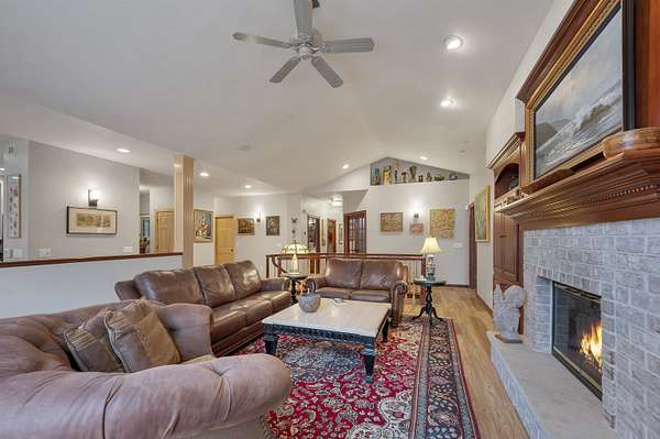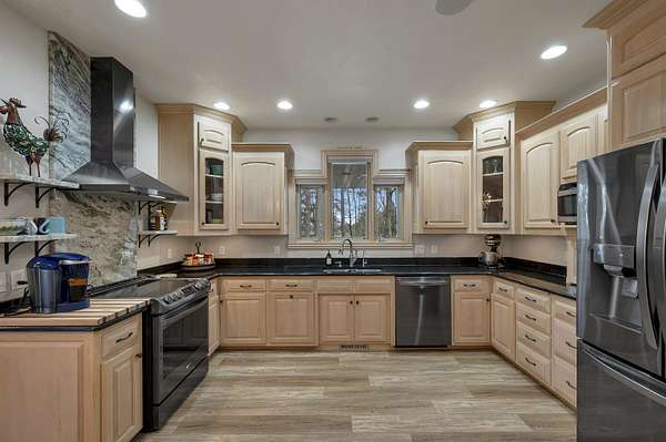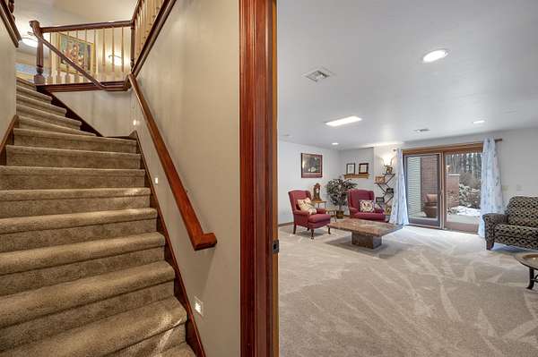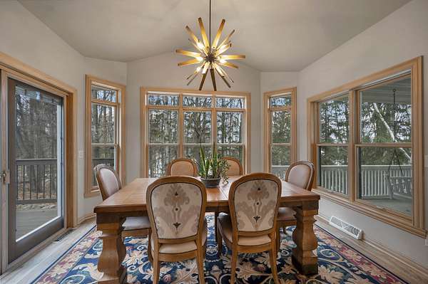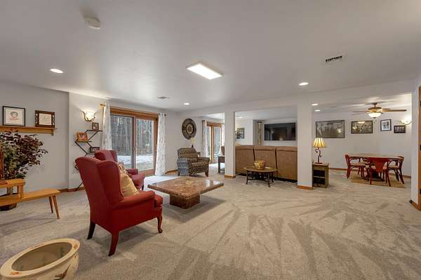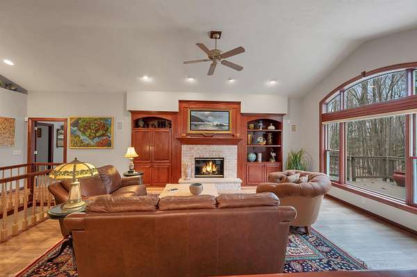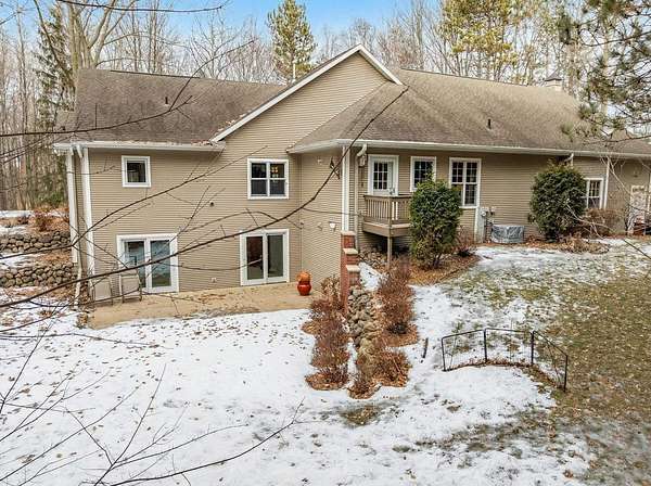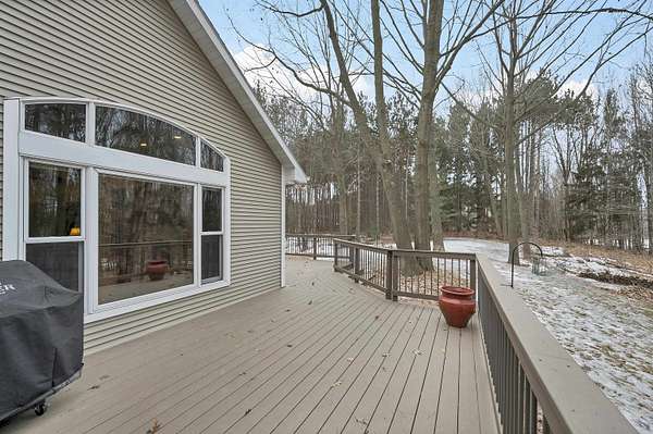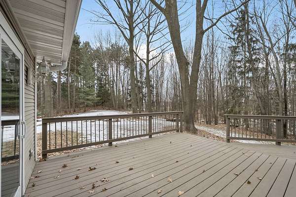 Escape to this spectacular ranch, a 4,720 sq ft masterpiece on 1.65 lush, wooded acres of pure tranquility! Immerse yourself in nature from your covered porch or host unforgettable gatherings on the deck overlooking soaring trees and beautiful backyard. Inside, a dramatic vaulted great room boasts a fireplace and sun-drenched windows, flowing into a chef's kitchen with sleek granite, a central island, and a walk-in pantry. Retreat to your luxurious primary suite, complete with a huge walk-in closet and a spa-inspired bath. The incredible walk-out lower level delivers a family room, rec area, 3rd bedroom/bath, and garage access. With a newer furnace and water heater, every detail is ready for you! Discover the ultimate canvas for your dream lifestyle, with seclusion and unbeatable views.