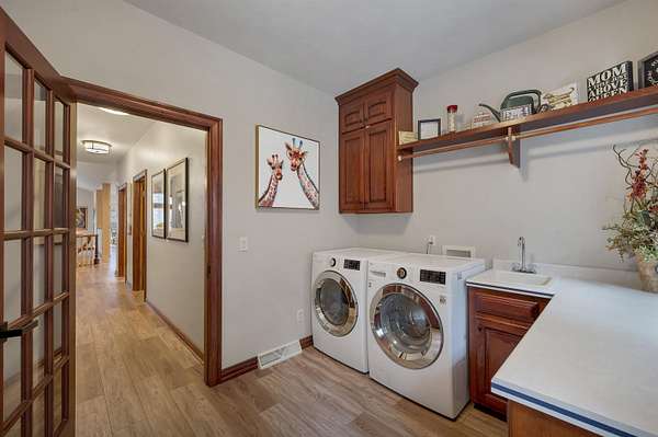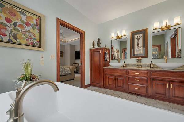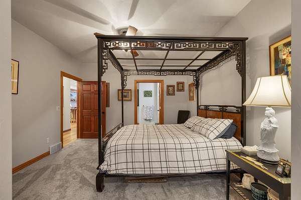 - At Least 1 Bathtub, Breakfast Bar, Central Vacuum, Kitchen Island, Pantry, Split Bedroom, Vaulted Ceiling(s), Walk-In Closet(s), Walk-In Shower, Water Softener-Own, Wood/Simulated Wood Floor