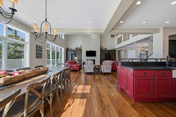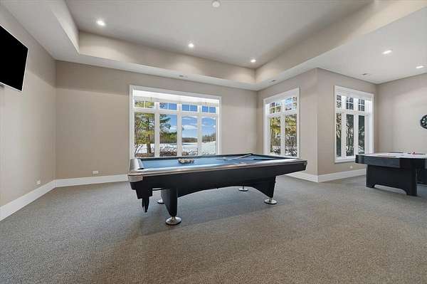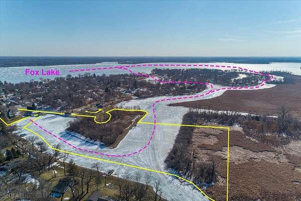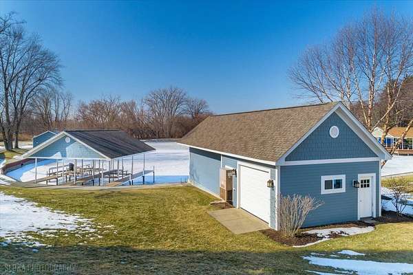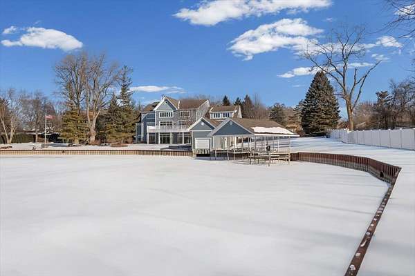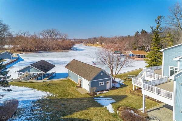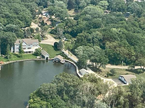 Experience the ultimate in lakefront living in one of the Chain O'Lakes' most coveted and tranquil settings-a secluded bay offering both serenity and effortless access to the open waters. This truly one-of-a-kind legacy estate spans more than 14 acres with an extraordinary 2,500 feet of pristine waterfront, creating a rare blend of privacy, scale, and natural beauty. The peaceful bay provides a protected environment ideal for swimming, kayaking, paddleboarding, birdwatching and year-round fishing, while still allowing quick passage to the main lakes. Custom built by the current owners with uncompromising quality and attention to detail, the residence offers approximately 8,400 square feet of refined living space, featuring 5 bedrooms, 6 full and 3 half baths, and an impressive collection of luxury amenities. A dramatic, sun-filled Great Room welcomes you with soaring ceilings, a striking two-story fireplace, and breathtaking sunset and bay views. The flowing, open-concept design continues into the gourmet kitchen and dining area, with access to a full-length deck-perfect for grilling, al fresco dining, and evening gatherings under the stars. The chef's kitchen is appointed with a Wolf cooktop and double ovens, separate Sub-Zero refrigerator and freezer, honed granite countertops, a large center island, built-in hutch, and a spacious walk-in pantry. The main-level primary suite is a private retreat, featuring a stone fireplace, stunning water views, a spa-inspired bath with heated floors, an expansive walk-in closet, and a dedicated washer and dryer. Additional main-level highlights include a private office with built-in desks and storage, an expansive mudroom, elevator access to all three levels, and entry to a heated three-car garage with TV. Designed for both entertaining and recreation, the walk-out lower level offers an expansive recreation room, media room, second kitchen, a steam room, an indoor pool and spa with outdoor access to a large paver patio, a safe/exercise room and 1.1 bathrooms. Another oversized heated lower-level garage provides convenient on-site boat storage. For the boating enthusiast, the property delivers a private marina experience including a conditioned 32' x 14' boathouse for year-round storage; 3 covered permanent piers with lifts, plus an additional lift alongside; a private concrete boat ramp and adjacent guest pier for safe docking and easy launching. For collectors and hobbyists, the estate features: a 1,400 SF heated and cooled workshop attached to the boathouse; an additional heated and cooled detached garage/shop; and a 40' x 60' barn with heated workshop and generous storage. The Chain O'Lakes comprises 15 interconnected lakes and 45 miles of waterways across approximately 7,100 acres, offering an ever-changing lifestyle of recreation and exploration --- cruise the Chain's larger lakes, visit waterfront restaurants, or retreat to quieter waters for fishing, waterskiing, and wakeboarding. This rare waterfront estate seamlessly blends luxury, recreation, and privacy, all just minutes from state parks, shopping, major highways, and approximately 45 minutes from O'Hare and Mitchell International Airports. Enjoy an easy commute directly to Chicago via commuter trains from Antioch or Fox Lake. A once-in-a-lifetime opportunity to own one of the Chain's most exceptional properties.