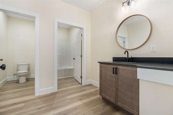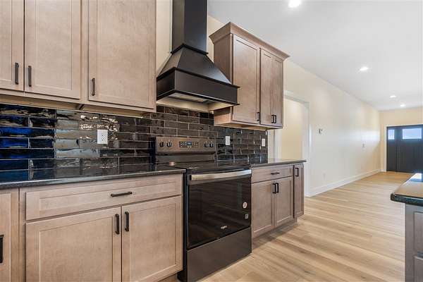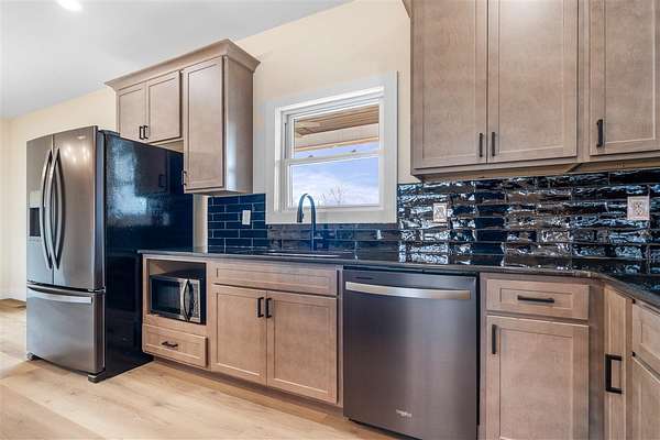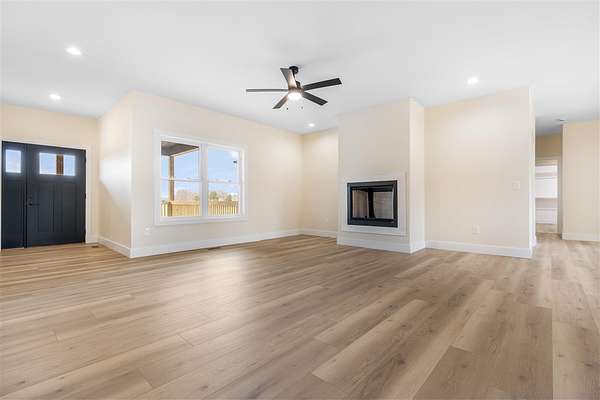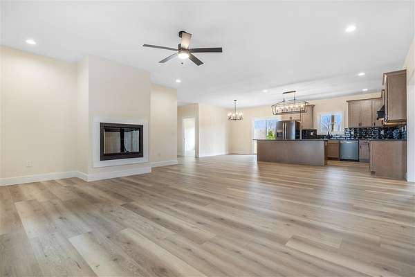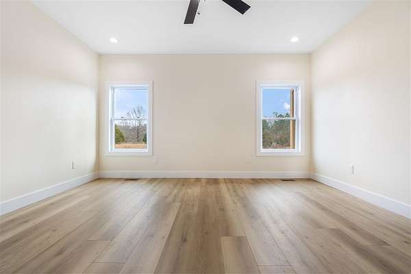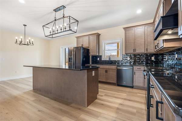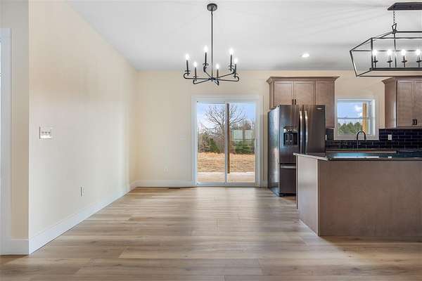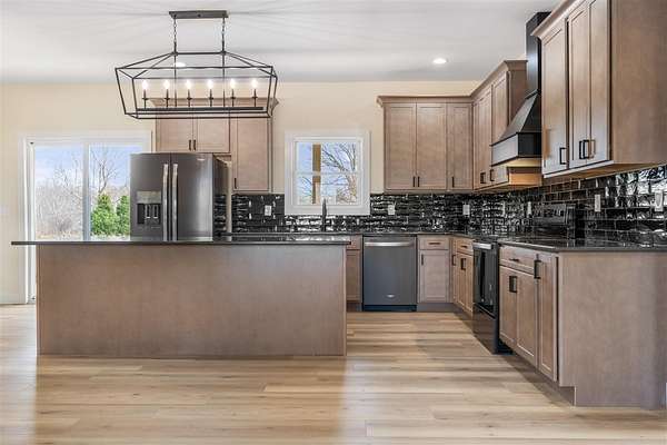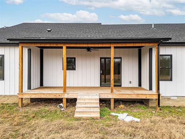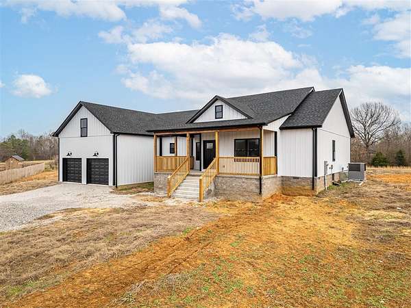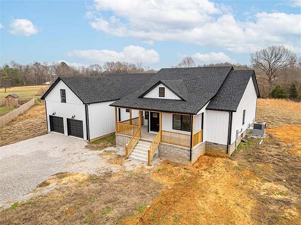 Modern Country Living at Its Finest - Sleek 4-Bedroom Home Step into contemporary style and comfort with this stunning 3,000 +/- sq ft white metal home featuring sleek black trim, a covered deck perfect for outdoor living, and a welcoming concrete front porch. Nestled on close to 2 acres of peaceful countryside, this spacious home offers the best of modern design and serene rural living. Inside, you'll find 4 generously sized bedrooms, including a luxurious master suite complete with a standing tub, double vanity, tile walk-in shower, and dual walk-in closets. A versatile, carpeted, bonus room upstairs adds flexible space for an office, playroom, or guest suite. The open-concept living area is anchored by a cozy gas log fireplace and flows effortlessly into the stylish eat-in kitchen, which boasts rich wood cabinetry, striking black granite countertops, and a bold black tile backsplash. Every detail of this home blends modern finishes with functionality, making it the perfect retreat for those seeking space, style, and tranquility. The light and modern LVP flooring, wood tone cabinets, black countertops and features really set this home over the top! Who doesn't want a brand new- modern and inviting home to call theirs?