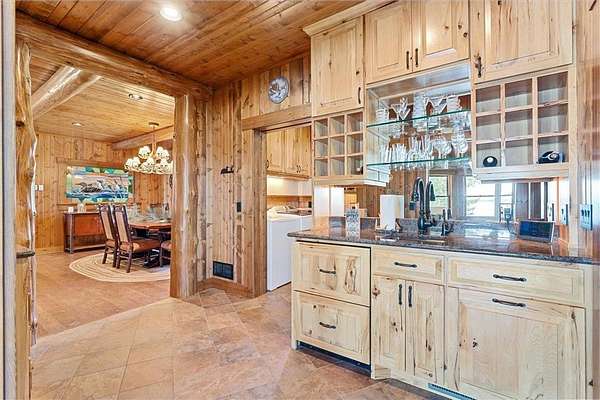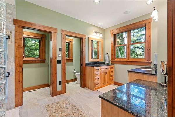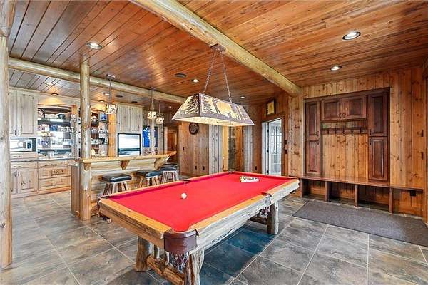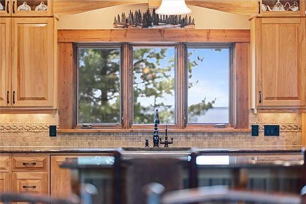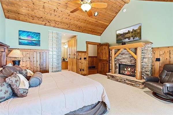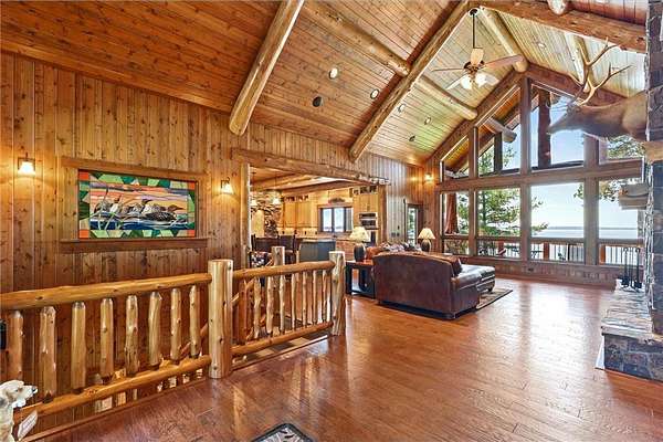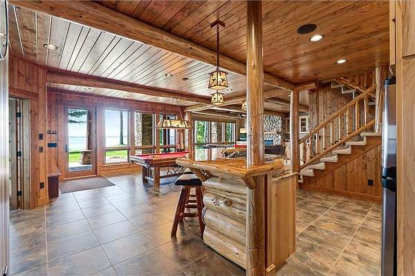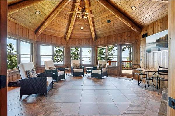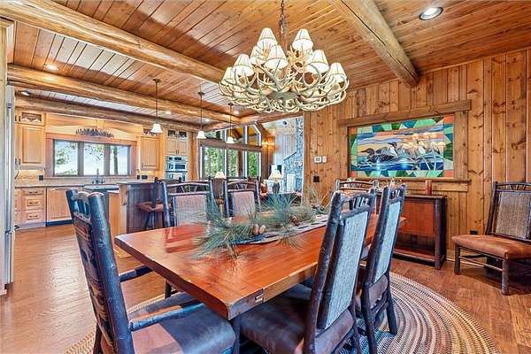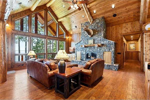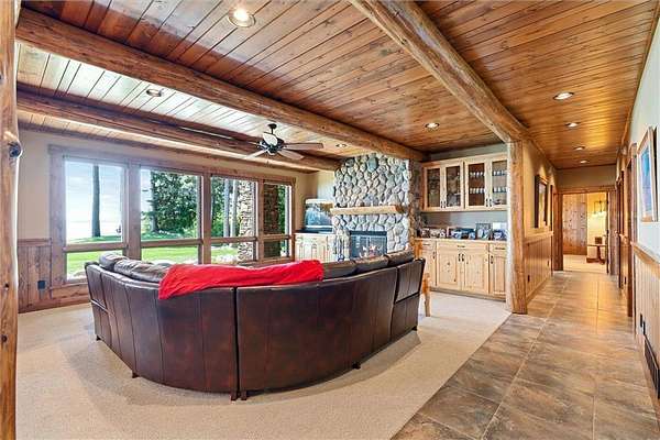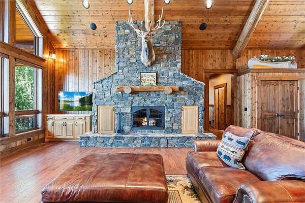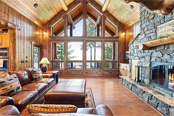 Pine Haven Classic is a one-of-a-kind estate with a timeless, yet elegant rustic flare. Situated on the prestigious Whitefish Chain, this almost 7 acre lakefront property features sweeping southern lake views toward Big Island. Nestled on the peaceful north shore of Upper Whitefish Lake, this extraordinary 5,600 SF custom-built 4+ bedroom, 5 bath home offers multiple stunning spaces to relax, entertain and connect. Ideal for entertaining or everyday living, this home showcases a vaulted great room with a wall of lakeside glass, inspired gourmet kitchen with custom cabinetry and stone range hood, lakeside primary suite with private bathroom complete with two toilet rooms, and a four-season porch with a heated floor that converts to a three-season porch by removing the windows (and storing them in their own custom storage closet). The home also features 4 unique fireplaces (one wood-burning), a comfy family room with surround sound, and rec room with bar and pool table. Packed with high end amenities that blend convenience and comfort, this home also features two newer closed loop geothermal units and has an accessible design with an elevator that goes between the two floors and no steps on either level. There is an attached oversized 3 car garage along with a lower level oversized walk-out 3 car garage with custom cabinets, heated floors, a dog wash and in-floor drains….perfect for indoor games and storing your lake toys. Offering an unmatched blend of recreation and serenity just steps from your door, this property also features a private low maintenance 9 hole golf course professionally designed by Scott Hoffman, the designer of The Classic at Madden’s. The course includes two ponds connected by a waterfall stream. All this and so much more makes Pine Haven Classic a place to create memories for the entire family…where timeless craftsmanship, outdoor beauty and luxury living meet.