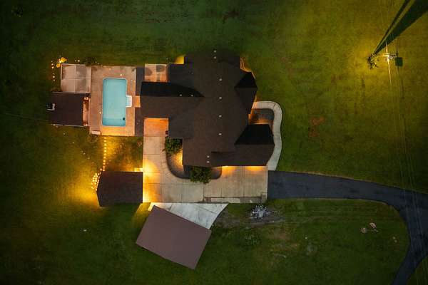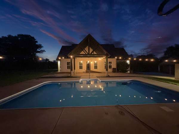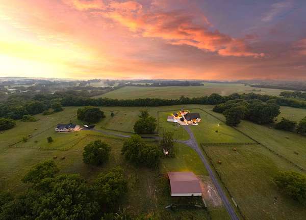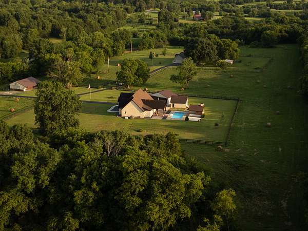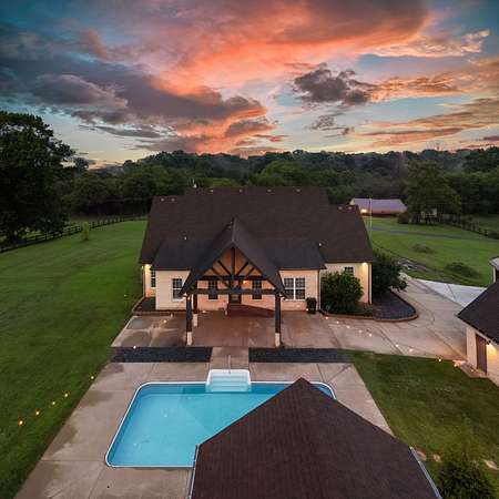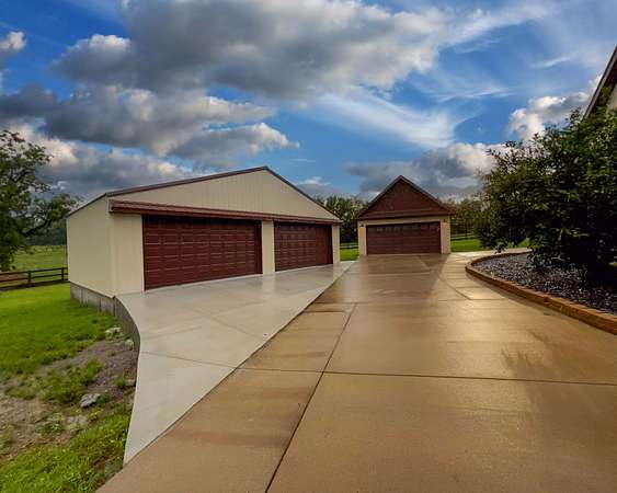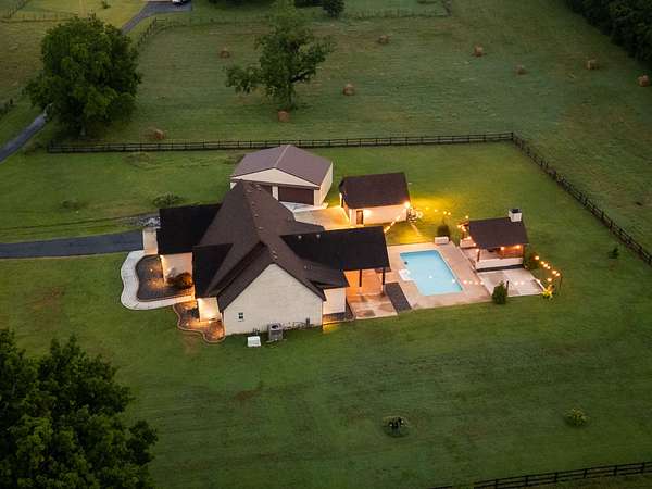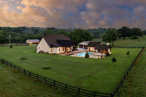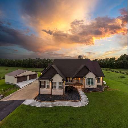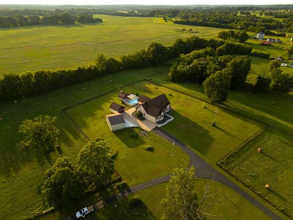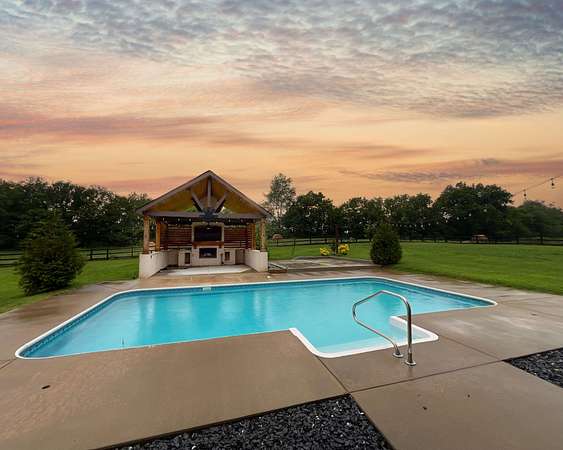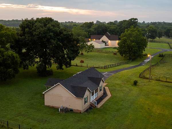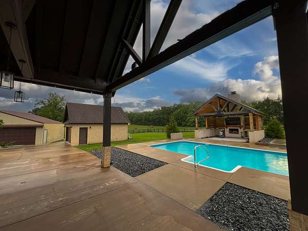 Discover a truly unique opportunity to own a multi-functional estate on 17.69 +/- fully fenced acres. This rare property features two separate homes, a versatile metal barn, and a host of outdoor amenities--perfect for multi-generational living, rental income, or creating your own private retreat. The main home is a spacious single-level residence offering 4 bedrooms and 3 full bathrooms, including a large bonus/family room ideal for gatherings or flexible living space. The open kitchen boasts quartz countertops, a stylish backsplash, and a gas range--with all appliances included. Additional features include a detached 2-car garage, natural gas with a tankless water heater, and access to a luxurious in-ground saltwater pool with a heater, paired with a custom outdoor pavilion--perfect for entertaining or relaxing in the privacy of your own backyard oasis. Brand new whole house generator for those unexpected moments! The second home, a well-maintained vinyl siding residence, offers 3 bedrooms, 2 bathrooms, and 1,324 square feet of comfortable living space, including its own 2-car garage. Ideal as a guest house, rental property, or extended family suite, it offers complete independence with separate utilities, septic system, and water tap. The metal barn on-site is equipped with electricity, water, and a gravel pad, ready to be customized as a workshop, horse barn, or hobby space to suit your needs. This property also benefits from Greenbelt enrollment, helping keep taxes low. Both homes are connected by a shared split driveway, yet fall under a single parcel, offering convenience with flexibility. Whether you're looking for space to grow, room to relax, or a smart investment, this one-of-a-kind property offers the perfect blend of function, comfort, and opportunity.