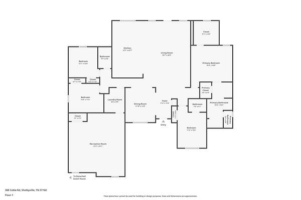 - Bedroom x 2, Dining Room, Kitchen, Living Room, Master Bathroom, Recreation Room