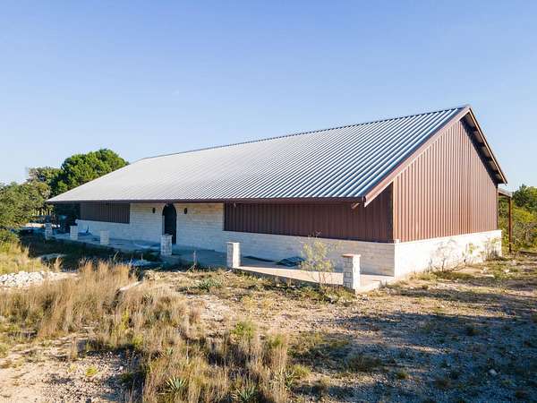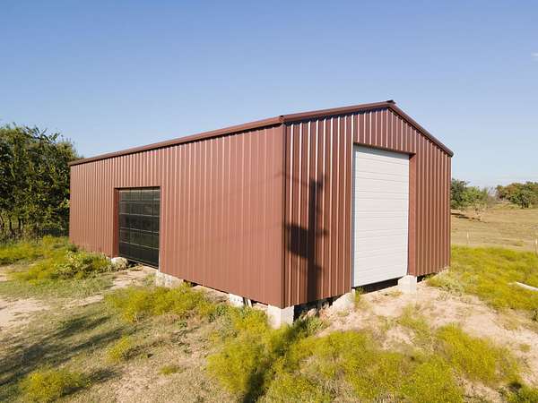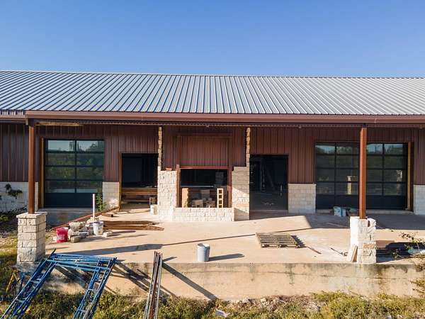 Discover a truly unique opportunity to own two homes on 29.621 acres of serene, Ag-exempt countryside - fully fenced and cross-fenced, perfect for ranch living, livestock, or multi-generational use. The main ranch-style home offers approximately 1,733 sq. ft. with 3 bedrooms and 3 full baths, featuring an open-concept floor plan, spacious living areas, and a covered patio ideal for outdoor entertaining. A private water well services this home, providing self-sufficiency and rural charm. The second residence, an impressive 5,054 sq. ft. metal-structure home, is partially finished and ready for your custom touches. With its open floor plan, double-sided fireplace, beautiful roll-up doors, and underground shipping container, this structure offers endless possibilities for completion as a luxury barndominium, workshop, or expansive family home. Electrical and plumbing rough-ins are already in place, streamlining the finishing process. Additional improvements include a 2,356 sq. ft. garage with a 1-bedroom, 1-bath apartment, perfect for guests, extended family, as well as a pole barn and an extra shop for equipment, vehicles, or storage. The property also features a wet-weather creek and seasonal ponds, adding natural beauty and character to the landscape. This property benefits from an Agricultural Exemption for lower property taxes, making it not only a beautiful investment but a smart one. Ideal for a buyer with vision and creativity-so