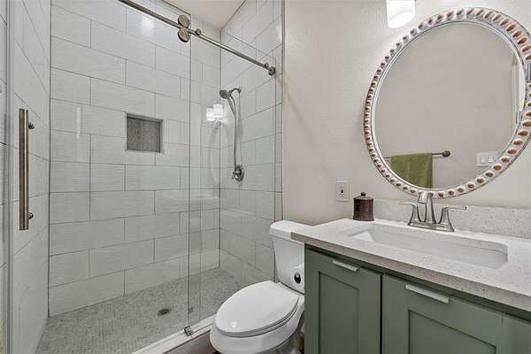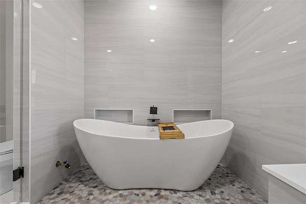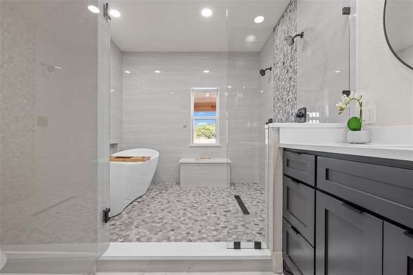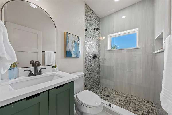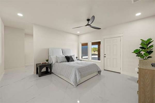 The main house flows thru an ideal open floorpan with all the right spaces, including a primary suite of dreams. Luxury living, kitchen, and laundry areas include features and storage beyond expectations. Ask about the full list of features, such as 6" spray foam insulation, multi-zone mini splits (6.5 tons AC) give better zone control at reduced energy costs, dual-pane high-E argon windows, professional epoxy flooring, low-maintenance metal roof and siding, and 9'+ ceilings. The kitchen offers soft close custom cabinets, a robot vacuum charging station, and quartz countertops. The spacious master bedroom has its own rear patio access and a huge walk-in closet. The master bath showcases a Japanese style wet bath with dual shower heads, and connection for an electric power sprayer, plus fan-assisted venting for cooling and drying.
