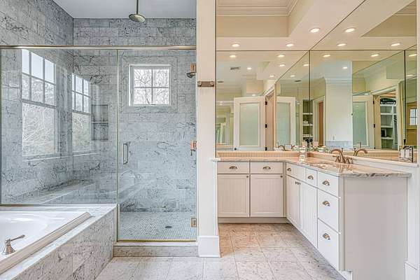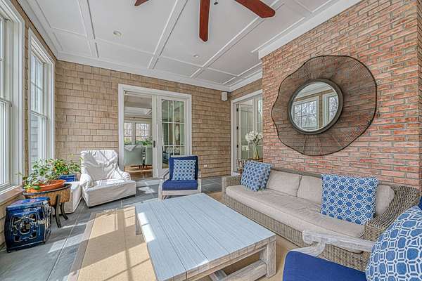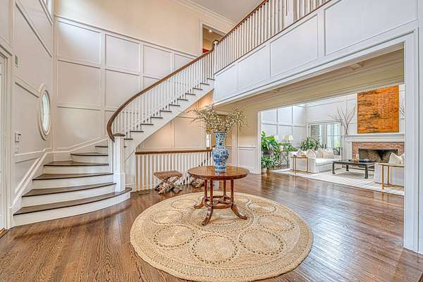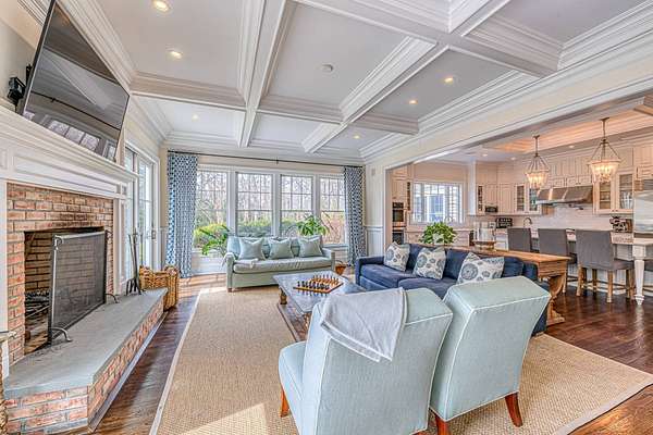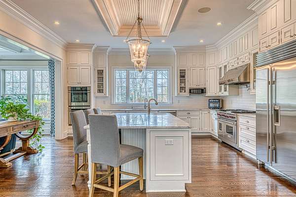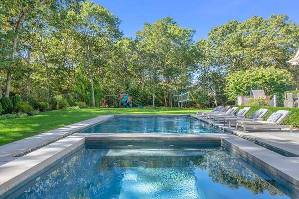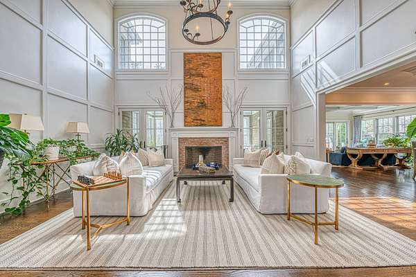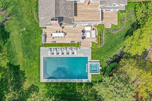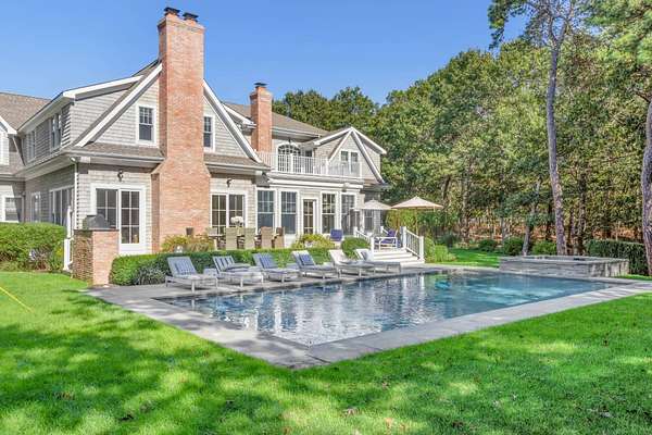 This luxurious 9,770 square foot home has every amenity and upgrade and enough room for all your guests. The first floor features an inviting entryway, a chef's kitchen flowing into a casual seating area, a dramatic double height living room, an private dining room, and one of the expansive primary suites. The second story has three ensuite guest bedrooms, a large primary with fireplace and an added billiards space that doubles as an office. The finished lower level includes a custom theater, gym space, guest bedroom, full bath, lower level office and a 3000 bottle wine cellar. For seamless indoor-outdoor living, a screened-in porch overlooks the backyard - complete with an extensive patio adjacent to the heated pool and spa. Just shy of 3 acres this estate is located just 2 miles from East Hampton Village on a quiet cul-de-sac backing to reserve for enhanced privacy.