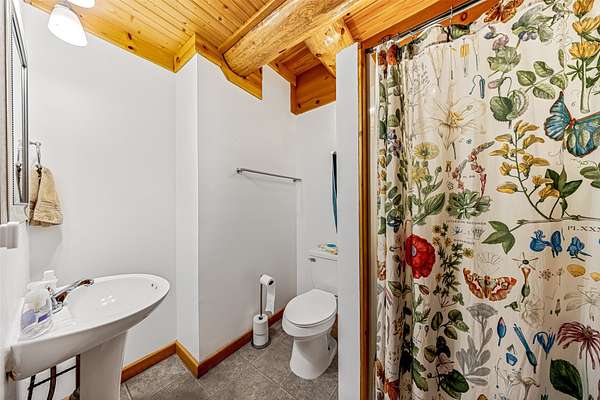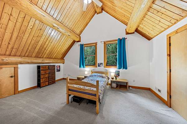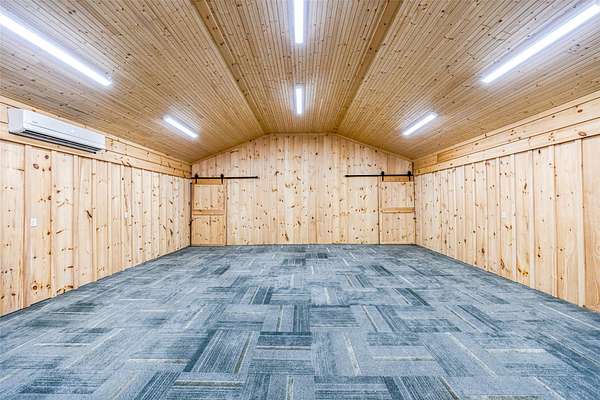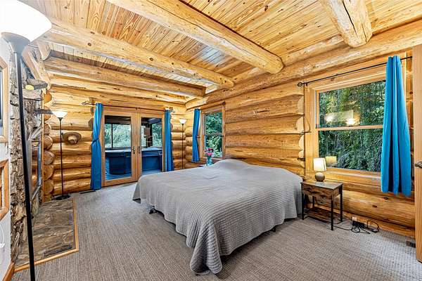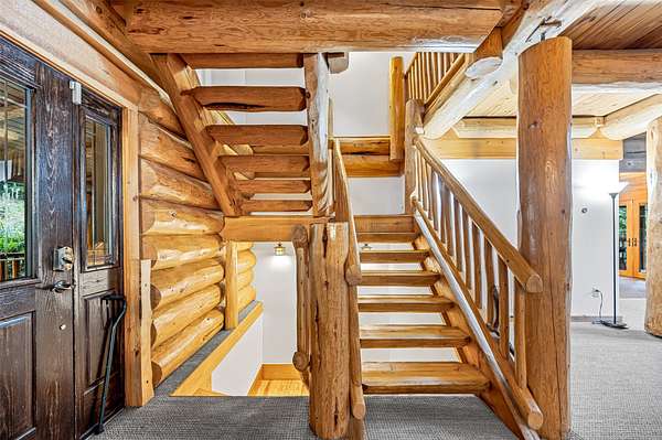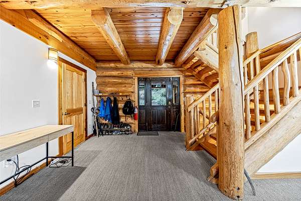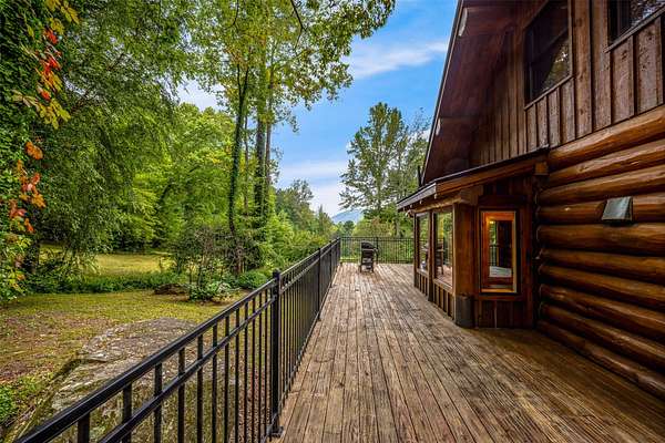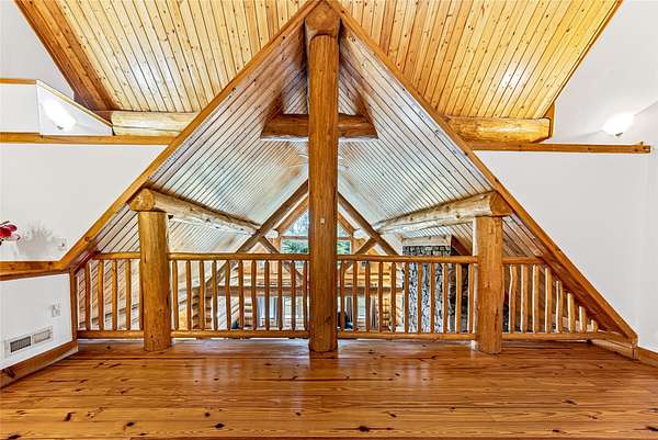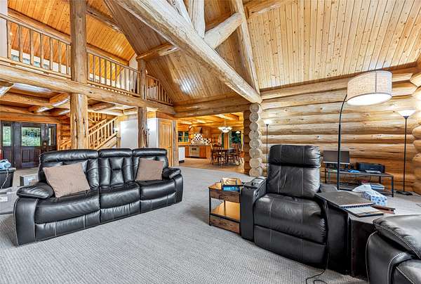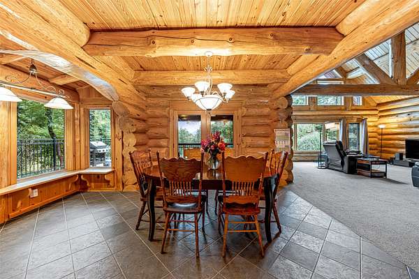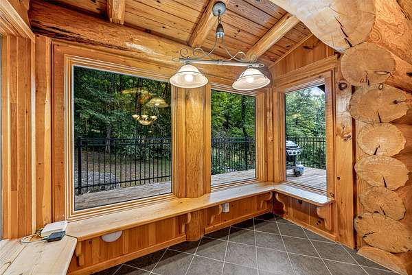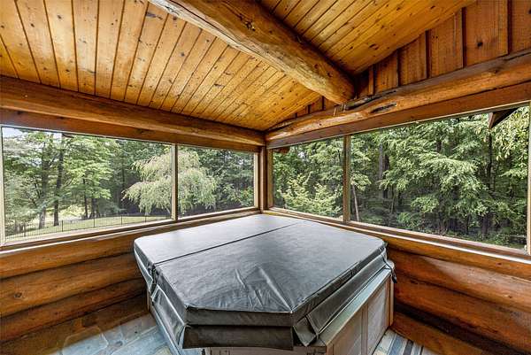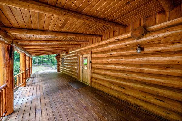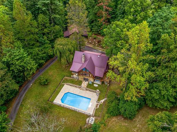 This mountain retreat features a spacious log home, a large event-style "barn", an immaculately maintained swimming pool and an open meadow, all on over 40 acres of beautiful upland forest. It's the perfect get-away spot for a lodge, vacation home, or residential homestead. The log home is spacious, with an open floor plan upstairs and a large bar/den/game room downstairs. Stone fireplaces, rustic wood interiors, massive log beams and posts and mantels bring a sense of timeless country comfort to this home, while a fully finished basement and modernized kitchen add functionality and ease of living. The large in-ground pool is bounded by a generous concrete apron, stone walls and steps, black steel safety fencing, and features a unique stone fireplace. The barn-style outbuilding boasts a fully-conditioned event- style open room, carpeted and well-lit, with a sink, prep counter and fridge. This rustic setting is combined with modern luxury for the ideal mountain retreat.