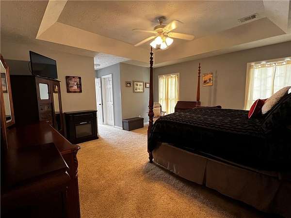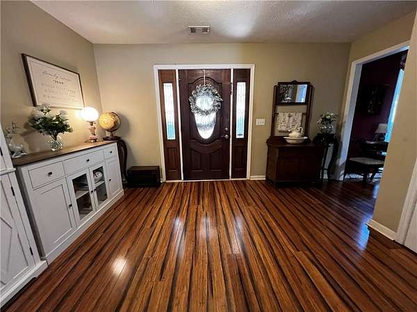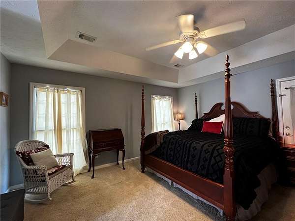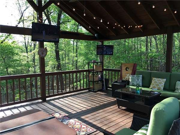 Discover peaceful country living just minutes from Lake Harding on just under 8 wooded acres. This expansive home blends indoor/outdoor entertaining with an in-ground pool, cabana, hot tub area and deck — perfect for summer gatherings. The grounds include large front and back fenced yards, a double covered carport plus an additional parking pad.