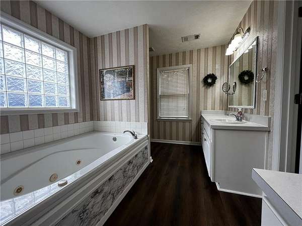 - Ceiling Fans, Garden Tub, Primary Bedroom Downstairs, Washer/Dryer Connection