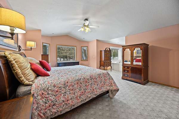 - Fireplace, Main Level Primary, Vaulted Ceilings, Walk In Closets