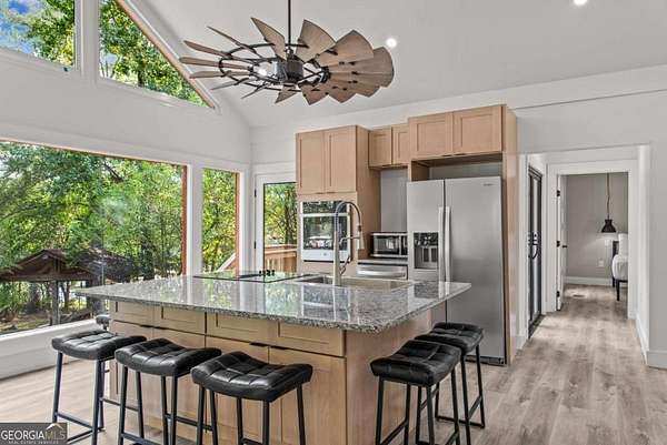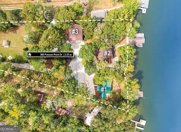 RARE LAKE SINCLAIR LIVE-AND-EARN ESTATE featuring 3 SEPARATE RESIDENCES, DEEP WATER and one of the MOST EXPANSIVE SHORELINES on the lake. This exceptional waterfront compound offers a unique opportunity to enjoy lake living while generating strong income potential. Situated on 2.35 private, fully fenced acres, this property includes 3 HOMES, making it ideal for investors, short-term rental operators, and/or multi-generational families seeking space, privacy, and flexibility. The main lakefront home is currently operating as a successful short-term rental generating approximately $50k-$65k annually, while the additional dwellings offer excellent potential for steady mid- to long-term income (ranging from $1700 - $2200/mo each). MAIN HOUSE : 5 Bedrooms 4 Bathrooms Designed for entertaining and large gatherings Incredible panoramic lake views Currently operating as a high-performing short-term rental All new appliances GARAGE APARTMENT (ADU): 2 Bedrooms 1 Bathroom Currently leased long-term Estimated rental value $1,800-$2,000/month Private balcony overlooking the lake All new appliances BUNGALOW/GUEST HOME: Fully remodeled 2 Bedrooms 2.5 Bathrooms Estimated rental value $2,200-$2,400/month Beautiful lake views and private setting All new appliances OUTDOOR AND PROPERTY FEATURES: Deep water, 3 RV hookups, Endless parking, New HVAC systems, water heaters and water pump, Entertaining areas galore -covered bar, swings, picnic tables, swings, HUGE garage shop w/bathroom. RARE OPPORTUNITY. FEE SIMPLE