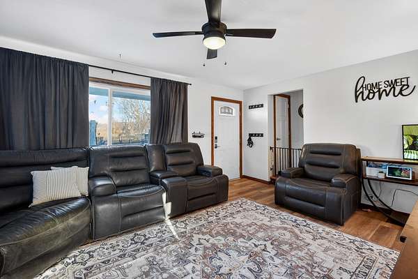 Peace, privacy, and country living at its finest - just minutes from town in this updated 4-bedroom home set on 18 acres! Inside, the home features a well-designed layout with a spacious living room and inviting kitchen featuring updated appliances, cabinets/countertops and walkout access to an oversized deck, including a dedicated gas line. The basement offers excellent additional living and storage space, featuring a home gym area, a secure gun room with a vaulted door, a large pantry and storage room, and a laundry area with an additional washing machine - along with direct access to the attached two-car garage. You're sure to love the expansive deck and above-ground pool offering ample space for relaxing or entertaining. The property features two large sheds, one of which is equipped with electricity and a mini split, offering AC and heat. With ease of access to I-80 and only a quarter mile of gravel, this property offers an ideal balance of privacy, convenience, and outdoor recreation. Many major updates were completed in 2017, including new roof/gutters, windows, flooring, and central AC. If you've been searching for an acreage that offers plentiful wildlife and a true outdoor oasis, look no further. Schedule your private showing today! All information obtained from sellers and public records.