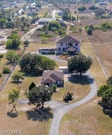 Welcome to an exceptional opportunity in Naples-an expansive NO HOA estate offering over 5,400 square feet of living space, a 4,181 sq ft main residence and a 1,230 sq ft guest home-delivering outstanding flexibility, privacy, and immediate income potential. Set on 2.5 fully fenced acres with an electronic entrance gate, this impressive property features two separate residences, making it ideal for multigenerational living, long term guests, rental income, or a home-based business with room to grow. The main residence welcomes you with a striking two-story foyer, elegant architectural details, and abundant natural light throughout. The thoughtfully designed layout offers four bedrooms and two full bathrooms upstairs, along with a massive loft providing versatility for a lounge, hobby area, or flex space. The oversized primary suite serves as a true retreat, featuring a spacious bedroom, memorable master bathroom and two large 8' x 7' walk-in closets. Downstairs, you'll find two additional rooms, including a den or guest quarters and an impressive media room that also functions as a reinforced safe room-a rare and valuable feature. Outdoors, enjoy a private pool and spa, screened lanai, and-most importantly-peaceful, secure surroundings. A charming fountain at the front entry enhances the property's welcoming yet grand presence, while the attached two-car garage, paved RV/boat parking area, and additional shed provide excellent storage and functionality. Offering ultimate peace of mind, the home is located in an X flood zone (no flood insurance required), equipped with accordion shutters, whole house reverse osmosis water filtration systems for both properties, two Trane air conditioners approximately seven years young with transferable warranties, and a 2018 roof. Complementing the main home is a fully equipped guest house offering three bedrooms, two bathrooms, an updated, open-concept kitchen, complete living quarters, along with its own attached garage. Whether you envision a private family retreat, a work-from-home setup, or an investment property with multiple uses, this estate delivers unmatched possibilities. Conveniently located near the newest Publix shopping plaza, A-rated schools, an easy commute to Arthrex or Ave Maria, this is a distinctive Naples property where space, freedom, and opportunity come together-at a price that WILL NOT last.