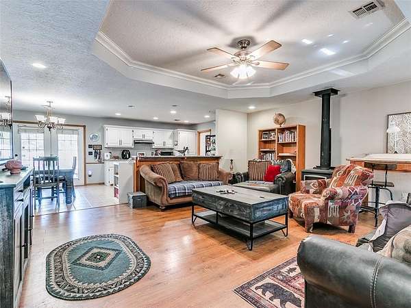 Just look at this beauty!! It will be love at first sight! Are you looking for the perfect home in a beautiful sought after area with scenery, outside serenity on 5.7 acres that keeps you from coming inside or the cozy comfort of the inside that keeps you from going out? If not, you should be! With this home, you don't have to choose, you get both! You will love the wide kitchen that features all the cabinets and space one would need for the perfect place to prepare those family meals. To add, the kitchen has granite countertops with bright recessed lighting. As a matter of fact, it has three-way lighting systems in the living room, kitchen and hallway. All the bedrooms are large enough to add most any size bed which includes ceiling fans for comfort you will need for a peaceful night's rest. Another added touch are marble windowsills throughout the home. You will love snuggling in the spacious living room to watch your favorite movie while staying warm with the wood-burning, free-standing fireplace for those cold winter nights. The bathrooms have fans to adjust to heat or cool. Whichever your body desires. The inside has a fresh coat of paint and is as clean as a whistle. Now let's talk about the outside. It's not just the ordinary brick facade. It has batted brick windows and its topped off with Soldiered brick. The newly graveled and grated driveway is circular to make coming and going as easy and convenient as possible. The carport has also been regravelled. 3 French drains have been installed for smooth drainage after heavy rains. Two on the south side of home and one in the main drive. In 2021 an Aerobic septic system with sprinklers was added to keep the garden, flowers and lawn looking top notch. When guests arrive, they will see the solar lighted trees that make a statement! The backyard is a place you will not want to leave! 2,000 plus brick pavers have been added to the landscaping. You have to get your eyes on this property. Every box will be checked!