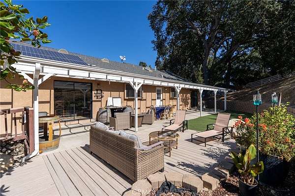 Welcome to this exceptional 2712 sf residence nestled on 2.49 acres at the northern end of Atascadero. With 3 bedrooms, 3 bathrooms and thoughtfully designed living spaces, this property offers the perfect blend of comfort, functionality and versatility. Step inside to a bright front living room featuring vaulted ceilings, a wood-burning stove with a charming brick surround and a large bay window that fills the space with natural light. The open kitchen and dining area provide plenty of room for everyday living or entertaining, offering ample cabinetry, generous counter space and a convenient center island. Adjacent to the kitchen is a spacious bonus room--ideal for a family room, game room, home gym or hobby space. This flexible area also presents an excellent opportunity to convert into an attached ADU, providing additional living quarters for extended family, guests or potential rental income (buyer to verify with the City of Atascadero). The outdoor living areas are truly special, designed to maximize enjoyment of the Central Coast lifestyle. A covered pergola, composite deck perfect for al fresco dining, trellis-covered patio and turf lawn create a low-maintenance, inviting backyard retreat. Behind the home, you'll find a ~600 sq. ft. workshop complete with a roll-up door, workbench, lighting and power--perfect for projects, storage or creative pursuits. At the back of the property is a large open area, ideal for animals, 4H projects or future expansion, including a potential ADU building site (buyer to verify with the City of Atascadero). The front of the property features an additional fenced pasture, a gated entry and an expansive driveway that easily accommodates multiple vehicles, including RVs, trailers and boats. Conveniently located with easy freeway access, this property offers a peaceful country setting while keeping you close to everything the Central Coast has to offer. Don't miss the opportunity to make this versatile property your own--whether you're looking for space to grow, create, or simply enjoy the outdoors. Please review the Virtual Tour for additional information.
