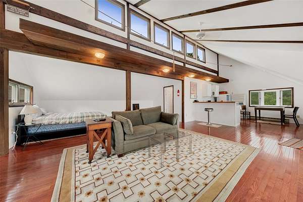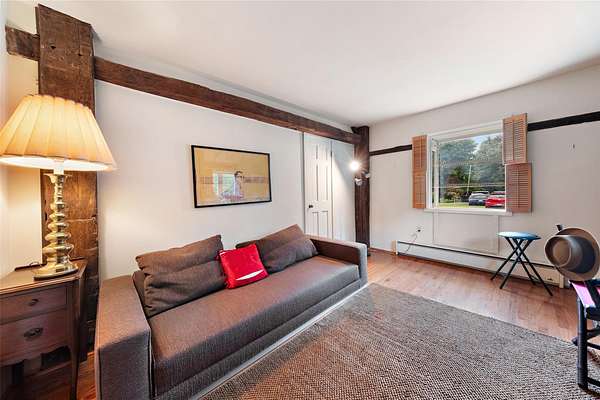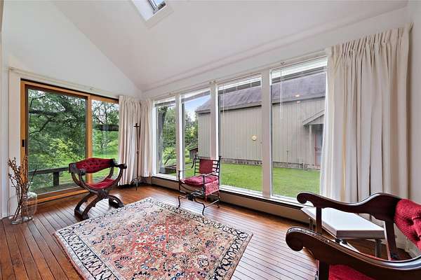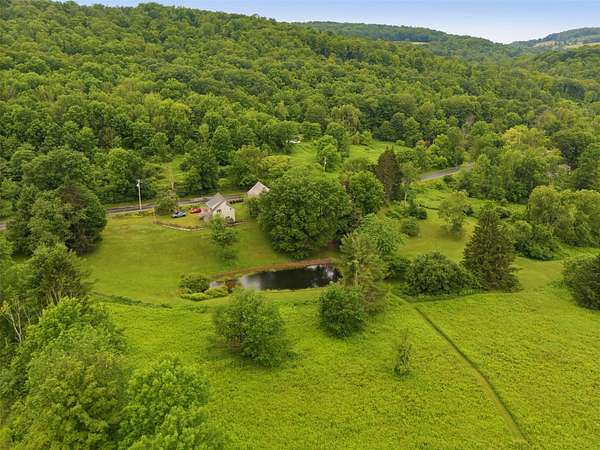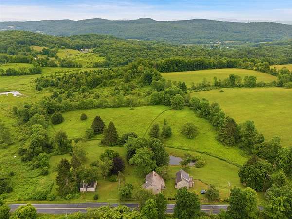 The Ultimate Getaway. The perfect country retreat! Long drive to total privacy. A historical home from the 1700's, once originally part of a hay farm. Over 50 glorious acres with beautiful open meadows, spring-fed pond, fruit trees and flowering gardens. Unique Post "& Beam Converted Barn, dating to 1763. Remarkable interior spaces with vaulted ceilings, hardwood floors, exposed beams and open floorplan. Distinctive Entry with antique leaded glass windows. Incredible Living Room with massive circular brick fireplace. Sun-filled Dining Room with floor-to-ceiling windows and doors to rear sun deck. Spacious and well-designed Kitchen. First Floor Bedroom with bay window and Bath. Skylit Primary Suite with Walk-in Closet. One additional Bedroom plus Loft Family Room. Separate built out studio ideal for Artist, Office space or Collector or private library. Detached Garage with Second Floor Guest Quarters. Hiking trails formed throughout the property with different seating to allow for your own private oasis. A remarkable country property in the foothills of the Upper Taconic Mountains and close to the Vermont border and Lake George.