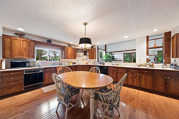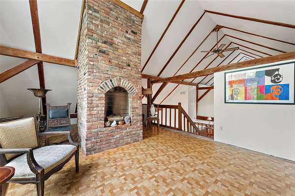 - Beamed Ceilings, Ceiling Fan(s), Eat-In Kitchen, First Floor Bedroom, First Floor Full Bath, Granite Counters, His and Hers Closets, Natural Woodwork, Open Kitchen, Pantry, Primary Bathroom, Washer/Dryer Hookup