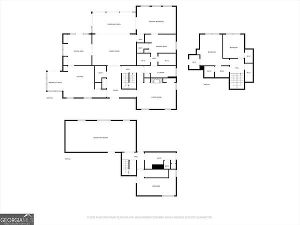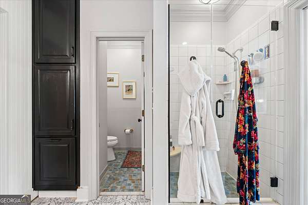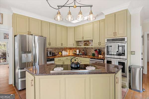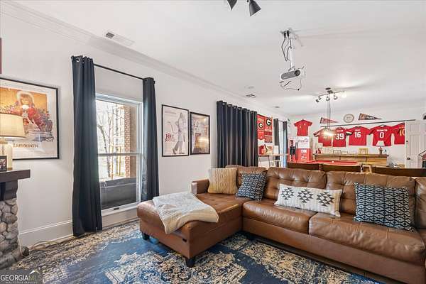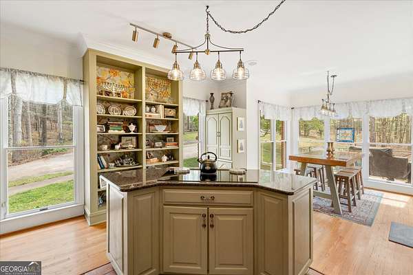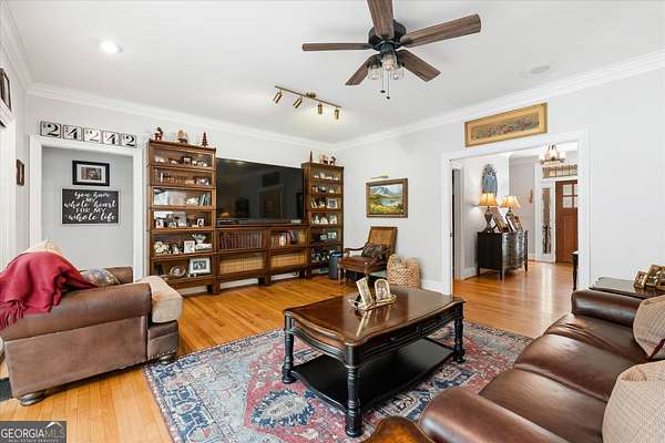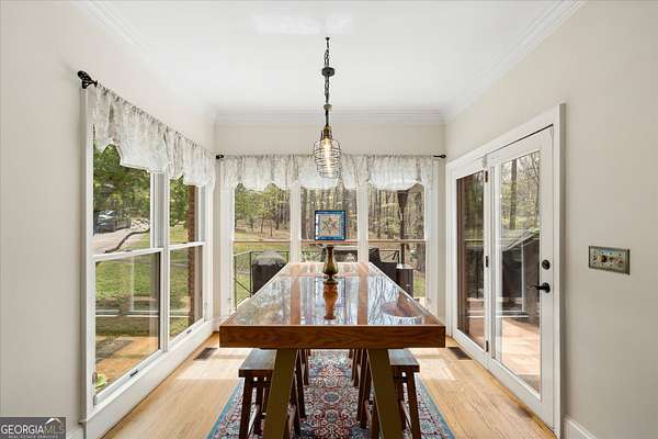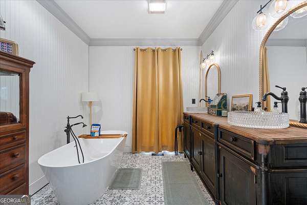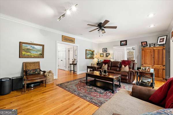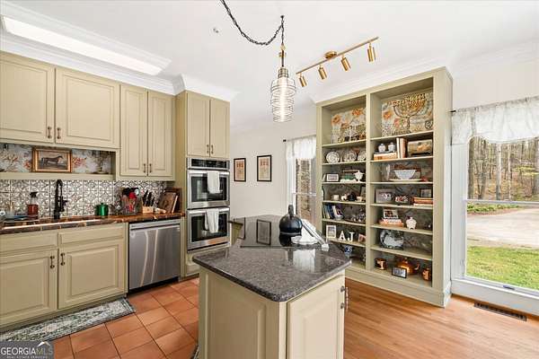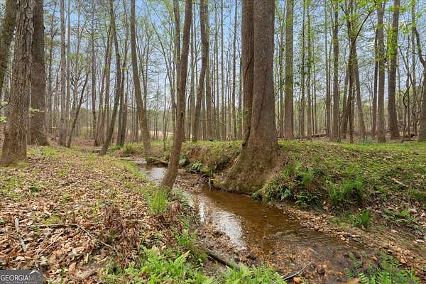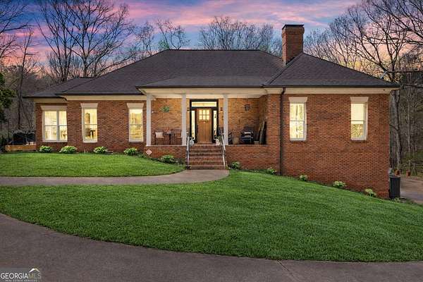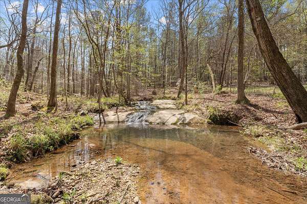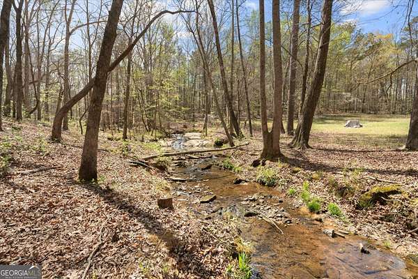 Welcome to your own private retreat nestled on an extraordinary 56.88 acres of pristine Georgia land. This stunning four-sided brick home offers a lifestyle most only dream about, where flowing creeks and rolling landscapes become your everyday backdrop. The updated kitchen is a culinary enthusiast's paradise, boasting butcher block countertops, a center island with cooktop, double wall ovens, and elegant built-in shelving. A generous eating area drenched in natural light from oversized windows flows seamlessly into a separate dining room featuring dual pantries, a charming bay window with built-in seating, and direct access to a sprawling deck with a custom pergola overlooking the creek below. The expansive living area opens through sliding doors into an enclosed sunroom - a breathtaking second gathering space wrapped in windows showcasing the creek and surrounding acreage. The primary suite is a true sanctuary, featuring an updated bath with decorative tile floors, a double vanity with two decorative bowl sinks, a separate shower, a luxurious soaking tub, and dual walk-in closets. A spacious main-level office impresses with built-in shelving, closets, and a wood-burning fireplace, complemented by a large half bath nearby. Upstairs, two additional bedrooms and a full bath provide comfortable living, while the finished lower level delivers entertainment-ready space complete with a recreation room, theater system, and full bath. Thoughtful extras like a dumbwaiter and propane generator add convenience and peace of mind. Schedule your private tour today and discover what nearly 57 acres of possibility feels like.