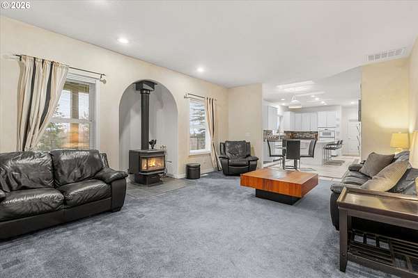 A rare opportunity on nearly 20 private acres offering exceptional versatility, privacy, and endless potential. This custom-built home welcomes you with high ceilings and an inviting foyer that opens to a spacious living room with a wood-burning fireplace and formal dining area-perfect for gatherings.The heart of the home features a large family room with woodstove flowing into the kitchen, complete with an oversized island, abundant counter space, ample storage, and two dishwashers, ideal for entertaining. A slider off the kitchen and additional dining space leads to the back deck, overlooking a peaceful, secluded backyard. The property backs to the GP moto course, creating a truly unique setting.The home offers 5 bedrooms, including a generous primary suite with deck access to the backyard and hot tub, dual sinks, and a walk-in closet. One wing of the home can function as a mother-in-law or guest suite with a connecting bathroom, offering flexible living options.Outside is an impressive 60' x 40' shop with tall roll-up doors, plus a 30' x 40' second-floor shop space with high ceilings. Both the home and shop are equipped with 400-amp power, and there are two separate septic systems-one for the house and one for the shop. Additional features include floor drains, a utility sink, and an RV dump station conveniently located near the driveway.Enjoy expansive acreage with room for parking, hobbies, or future event/venue possibilities. A two-mile GP motocross course is on the property with access to Mountain View MX, one of the Northwest's premier motocross tracks.Recent updates include a newer 50-year roof, new windows and doors within the last four years, LeafGuard gutters, and a newer hot tub.Additional opportunity: An adjacent 13.28-acre tax lot holding the main track is also available MLS #721335934.A truly one-of-a-kind property with unmatched potential.
