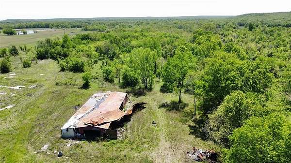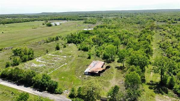Est $603/mo15 acres m/l with rural water and electric, septic is to be confirmed. All paved roads to property. Nice metal overhead entrance to old building and another entrance on property to the pasture. Partial cement floor where old building was. Very quiet setting with open pasture in the front/North side of the acreage. The back/south half is wooded with mature trees, wildlife and signs of an old homestead. Fencing is to be confirmed . Centrally located between Tulsa and OKC. Easy access to I40. Property is sold in as-is condition.