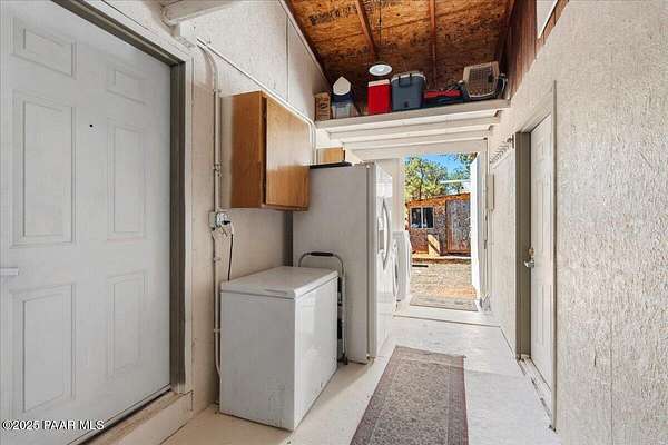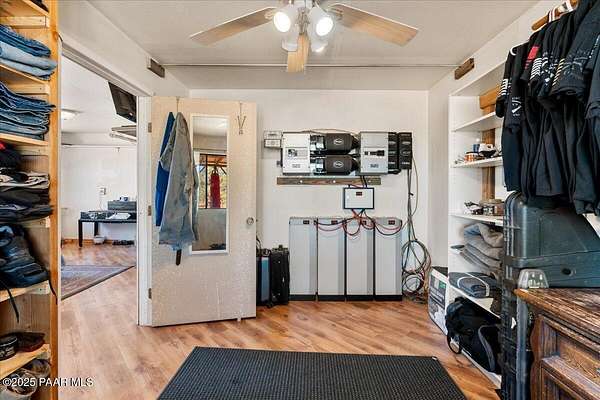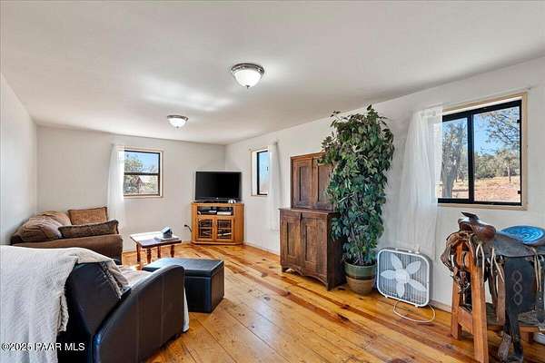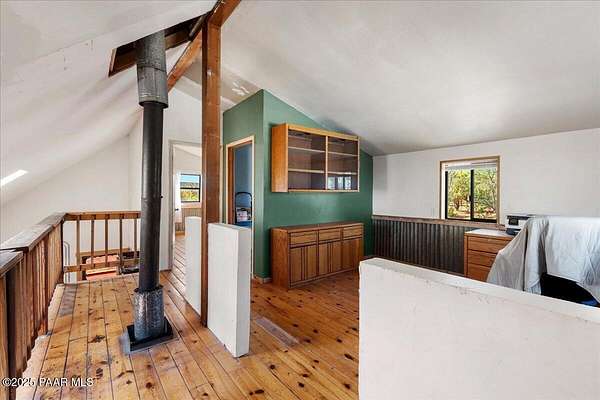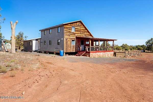 Discover a rare opportunity to own this beautiful 40.81-acre ranch complete with a charming two-story home. The property is dotted with large, mature trees, expansive open spaces, and offers breathtaking views of Bill Williams Mountain right from the porch.Inside, the home features 2 bedrooms, a loft, 1 full bathroom, and abundant storage, making it both functional and comfortable.The ranch is fully equipped for recreation and country living, boasting a private shooting range, archery range, two storage sheds, and a barn. Privacy and serenity are unmatched here, with endless space to roam and explore.This home is self-sustaining, running on a solar system, a wood-burning stove, with a conventional septic system, propane, and a backup generator for reliable off-grid living.Whether you're looking for a full-time residence, a weekend retreat, or a private homestead, this Ash Fork ranch is a true find.