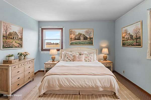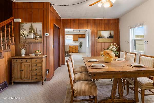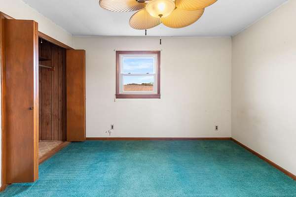 Discover the perfect blend of rural tranquility and convenient access with this property located just 2 miles from town. Nestled on a picturesque 4.25 acre lot, you'll enjoy sweeping views of rolling hills and the soothing presence of a small creek along the back edge of the land—ideal for nature lovers and those seeking privacy. A spacious 36x27 Cleary shed offers ample room for storage, hobbies, or workshop space. While the roof, windows, furnace and water heater are newer, this spacious 4 bedroom / 2 bath house is awaiting your vision and some TLC.