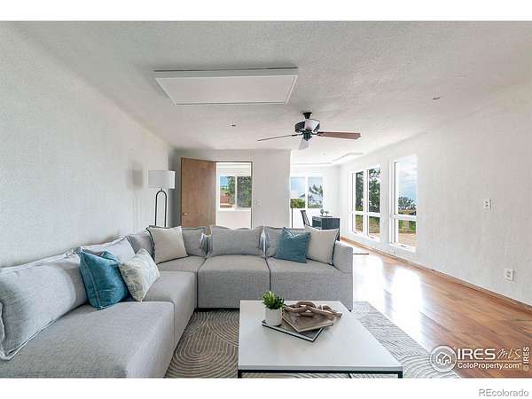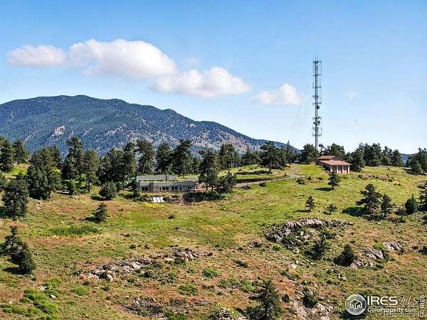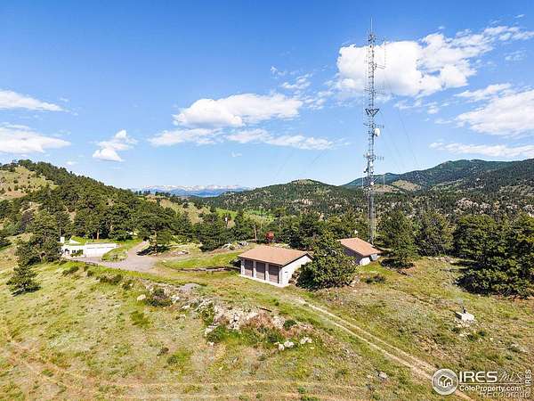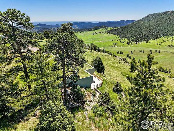 Rare and remarkable 100-acre legacy property in the foothills of Golden, CO-offering privacy, sustainability, and breathtaking views. This one-of-a-kind, earth-sheltered / earth bermed home is built into the mountainside with thick concrete walls, passive solar design, and a living grass roof that blends seamlessly into the natural landscape. Enjoy unobstructed mountain, valley, and city views, along with direct access to Jefferson County Open Space and miles of hiking and biking trails. Set at the end of a one-mile privately maintained road, the 3BD/2BA home features vaulted ceilings, open-concept living, Saltillo tile floors that retain solar warmth, Brazilian engineered hardwood, and clerestory windows that fill the space with light and air. A cast-iron woodstove and thermal mass wall warm the living areas and adjacent primary suite, while electric ceiling panels provide supplemental heat. The kitchen offers custom wood cabinetry, center island, and panoramic views, with direct access to a spacious composite deck-perfect for sunset dining or relaxing in nature. The primary suite includes wall-to-wall windows, a cozy sitting nook, walk-in closet, and deck access. Two additional bedrooms feature outdoor access, generous storage, and a shared Jack-and-Jill bath. A 3-car attached garage is complemented by a second detached 3-car garage. This site features a permitted, income-producing 150-foot guyed communication tower and a 645-square-foot control building, all located on a separate 5.6-acre parcel zoned for special use by Jefferson County (~$16K/year gross revenue). Surrounded by protected land, wildlife, and expansive skies, this sustainable retreat offers peace, purpose, and a deep connection to the landscape-just 30 minutes from Golden.