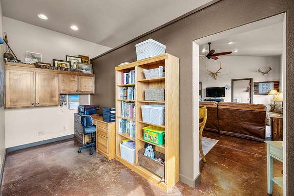 - Breakfast Bar, Ceiling Fan(s), Fiberglass Stall Shower, Granite Counters, Linen Closet, Primary Downstairs, Soaking Tub, Solid Surface Counters, Stone Counters, Tile Shower, Vaulted Ceiling(s)