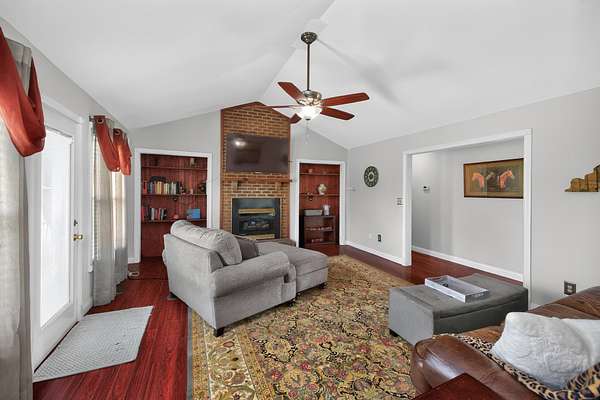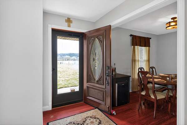 Est $2,349/moTake in the scenery, enjoy the quite county life, sitting on 5 acres, this brick ranch home offers easy living and peaceful country life. Four Bedrooms 2 full updated baths, Primary Suite with walk in closet, hardwood floors, beautiful brick fireplace in Living Room with Vaulted ceiling and built in shelving, Dining Room, Kitchen with breakfast area granite counter tops and all appliances (range, dishwasher, refrigerator, microwave), Large Laundry Room and oversized two car garage with space for tool/hobby storage. Detached building for additional storage as well as a back deck and covered front porch to enjoy!