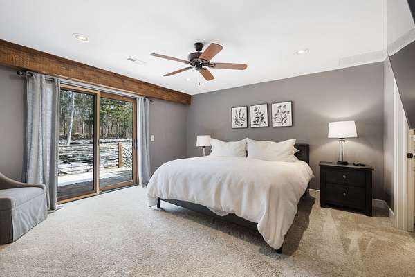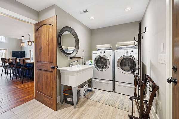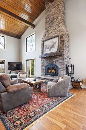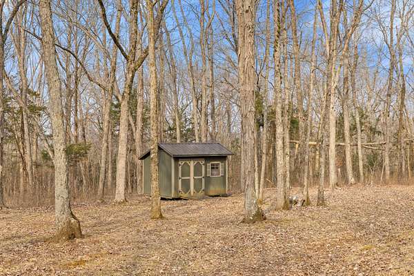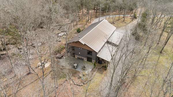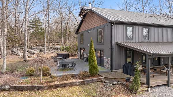 Tucked away among picturesque, serene woods, this private 3-bedroom, 2.5-bath retreat offers the perfect blend of rustic charm and modern comfort. Set on 67.57 expansive acres, this barndominium-style home features over 2,800 square feet of thoughtfully designed living space that feels miles from it all--yet remains just 35 miles from downtown Nashville and 20 miles from historic downtown Franklin. Inside, you're welcomed by soaring two-story ceilings and an abundance of natural light that fills the open living and dining areas. A stunning floor-to-ceiling stone fireplace anchors the space, creating a warm and inviting focal point ideal for both quiet evenings and lively gatherings. The spacious kitchen is designed for entertaining, complete with a large center island offering ample prep and seating space, built-in double oven, dishwasher, refrigerator, and under-counter microwave. Just off the kitchen, a conveniently located laundry and powder bath combination adds everyday functionality. The main-level primary suite provides a peaceful escape with an en-suite bath featuring double vanities with granite countertops and a generous floor-to-ceiling tiled shower with built-in bench. Upstairs, an open loft overlooks the dramatic living and dining rooms below, offering flexible space for an office, lounge, or hobby area. Two additional bedrooms and a full bath complete the second level, including one bedroom with its own private deck overlooking the breathtaking property. Outdoor living is truly exceptional, with multiple spaces designed for relaxation and entertaining. An expansive patio features a fire pit and hot tub area, while a covered deck showcases sweeping views--perfect for morning coffee at sunrise or evening wine at sunset. Adding even more versatility, the property includes an attached two-car garage with over 1,400 square feet of potential for storage, a workshop, or creative space, along with an additional single-car carport.