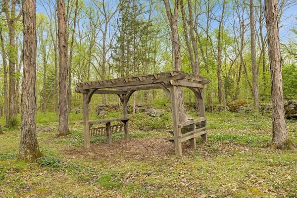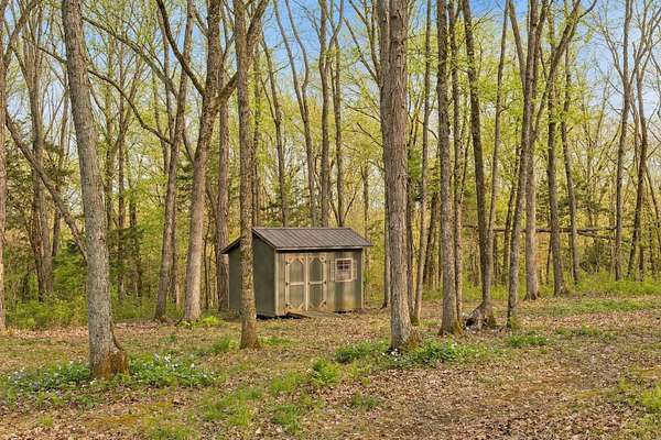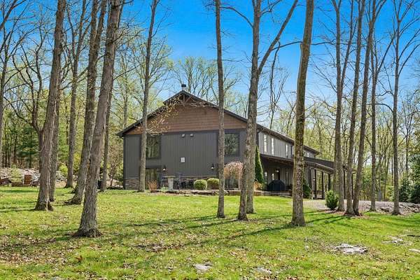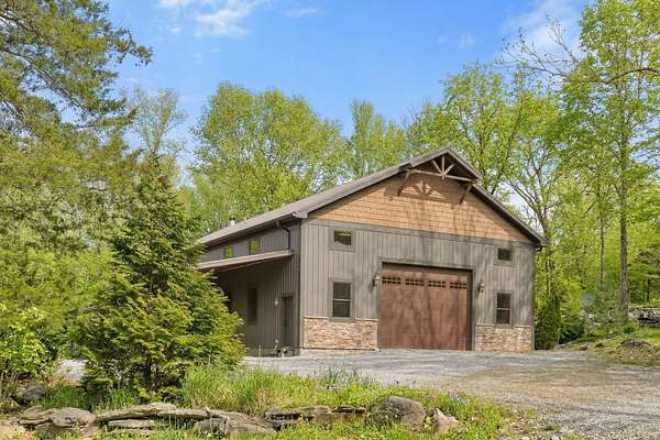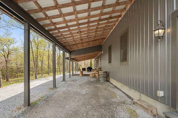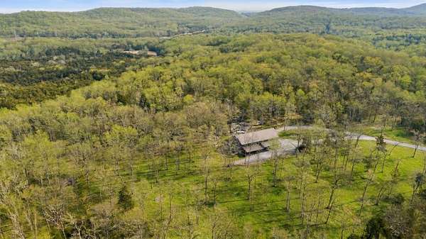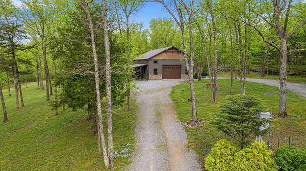 Tucked away among picturesque, serene woods, this private 3-bedroom, 2.5-bath retreat offers the perfect blend of rustic charm and modern comfort. Set on 64.46 expansive acres, this barndominium-style home features over 2,800 square feet of thoughtfully designed living space that feels miles from it all—yet remains just 35 miles from downtown Nashville and 20 miles from historic downtown Franklin. Inside, you’re welcomed by soaring two-story ceilings and an abundance of natural light that fills the open living and dining areas. A stunning floor-to-ceiling stone fireplace anchors the space, creating a warm and inviting focal point ideal for both quiet evenings and lively gatherings. The spacious kitchen is designed for entertaining, complete with a large center island offering ample prep and seating space, built-in double oven, dishwasher, refrigerator, and under-counter microwave. Just off the kitchen, a conveniently located laundry and powder bath combination adds everyday functionality. The main-level primary suite provides a peaceful escape with an en-suite bath featuring double vanities with granite countertops and a generous floor-to-ceiling tiled shower with built-in bench. Upstairs, an open loft overlooks the dramatic living and dining rooms below, offering flexible space for an office, lounge, or hobby area. Two additional bedrooms and a full bath complete the second level, including one bedroom with its own private deck overlooking the breathtaking property. Outdoor living is truly exceptional, with multiple spaces designed for relaxation and entertaining. An expansive patio features a fire pit and hot tub area, while a covered deck showcases sweeping views—perfect for morning coffee at sunrise or evening wine at sunset. Adding even more versatility, the property includes an attached two-car garage with over 1,400 square feet of potential for storage, a workshop, or creative space, along with an additional single-car carport.
