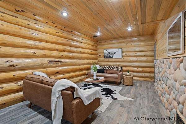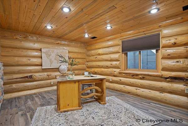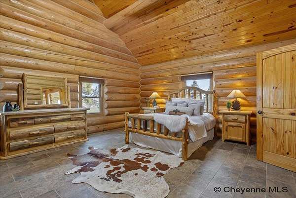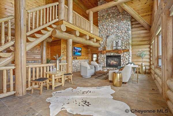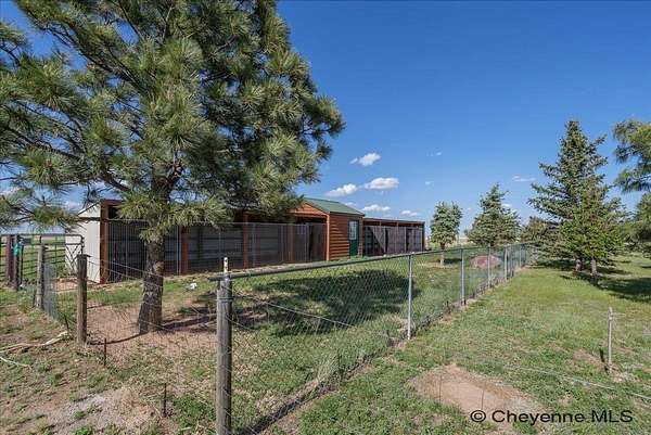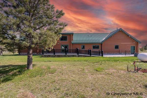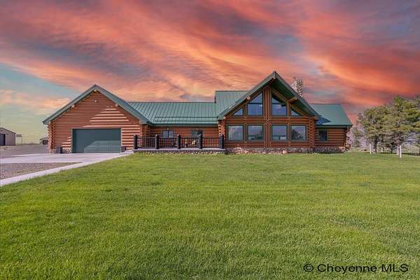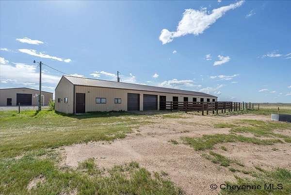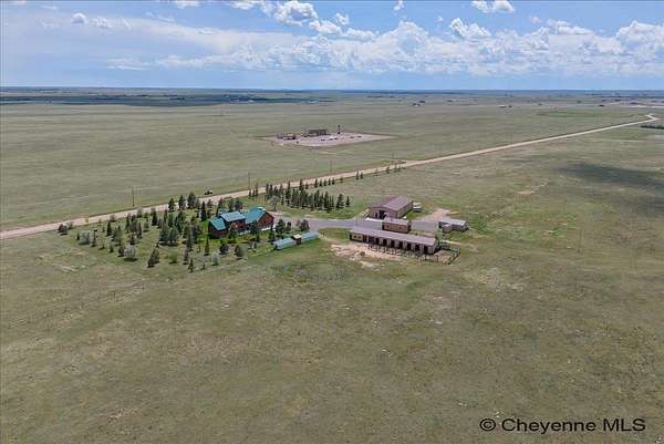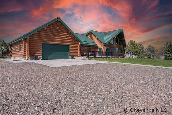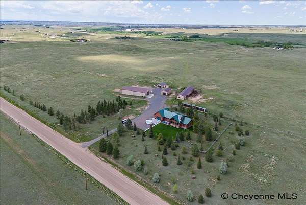Exquisite Ranch Estate! Experience the perfect blend of luxury living and Western grit --a rare opportunity to own a distinguished 80-acre ranch estate just outside Cheyenne, Wyoming. Set on an expansive 80 acre parcel, with additional parcels available for purchase, this hand-planed custom log home offers privacy, panoramic views, and the freedom to live the Wyoming lifestyle you've always imagined. The Luxury Home: 6 bedrooms+workout/office 5 bathrooms 2+car attached garage Custom-built log home with 12-in hand-planed Idaho sourced logs, soaring ceilings, show-stopping entry fireplace, enormous primary suite with vaulted ceilings, 3 walk-in closets, luxury en-suite with corner tub and spa cave shower, main level laundry, full log basement with workout room, wine nook and spacious additional master suite. Huge porch and patio for entertaining, fenced yard, Central HVAC and A/C, sprinkler and over 100 mature trees on drip! The Incredible Outbuildings: 1) 5000sf insulated concrete & red steel building with 18' clear span, overhead radiant tube heat, vehicle lift, 12' drive-through overhead doors, office area, restroom with hot water 2) 3528sf (96x28) confinement barn with heated office+tack, restroom with hot water, hot/cold wash bay, hay storage and dock, 7+ indoor/outdoor pipe stalls with refreshed footing, central waterer, corrals, pipe round pen, 80 acres pasture. 3) 960sf pole barn with overhead door 4) 960 pole barn with overhead door and attached cooler unit for show cattle 5) 2 Livestock shelters/chicken coops with runs. The Land: -80 deeded and fenced acres across from 960 acres of Wyoming Trust Land. 100+trees on drip system. -2 additional, contiguous 40 acre parcels available for sale separately (ask Listing Agent for additional details)