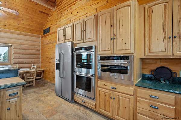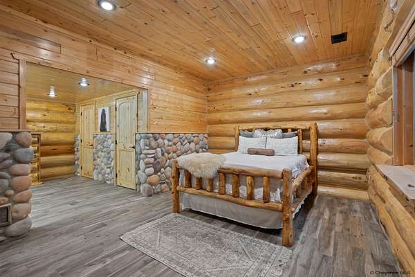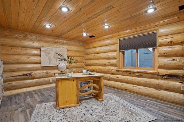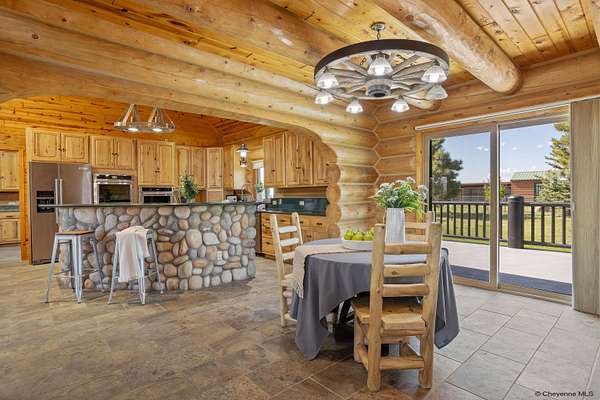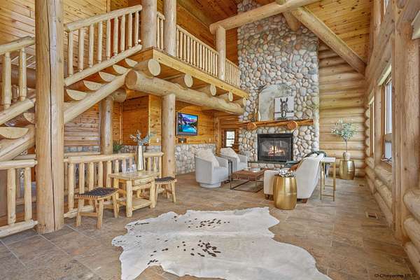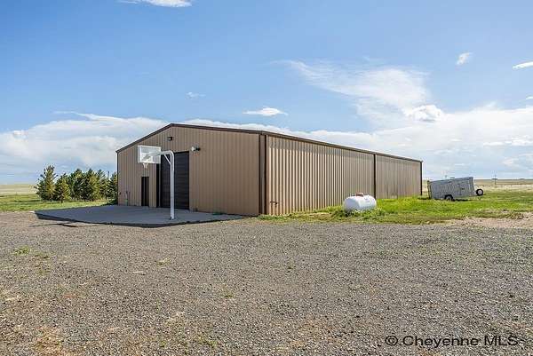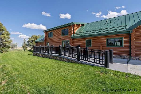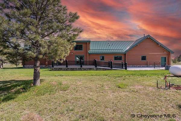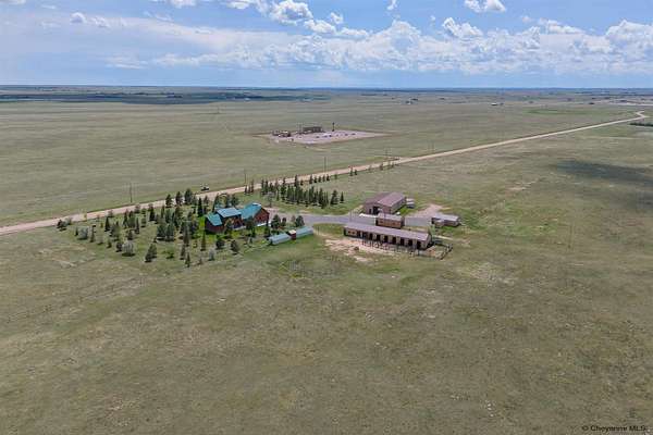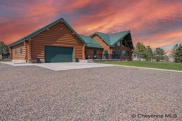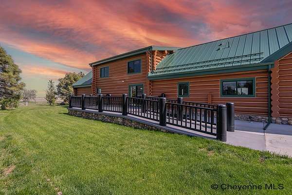 Exquisite Ranch Estate! Experience the perfect blend of luxury living and Western grit --a rare opportunity to own a distinguished 160-acre ranch estate just outside Cheyenne, Wyoming. Set on an expansive 160 acre parcel, this hand-planed custom log home offers privacy, panoramic views, and the freedom to live the Wyoming lifestyle you've always imagined. The Luxury Home: 6 bedrooms+workout/office 5 bathrooms 2+car attached garage Custom-built log home with 12-in hand-planed Idaho sourced logs, soaring ceilings, show-stopping entry fireplace, enormous primary suite with vaulted ceilings, 3 walk-in closets, luxury en-suite with corner tub and spa cave shower, main level laundry, full log basement with workout room, wine nook and spacious additional master suite. Huge porch and patio for entertaining, fenced yard, Central HVAC and A/C, sprinkler and over 100 mature trees on drip! The Incredible Outbuildings: 1) 5000sf insulated concrete & red steel building with 18' clear span, overhead radiant tube heat, vehicle lift, 12' drive-through overhead doors, office area, restroom with hot water 2) 3528sf (96x28) confinement barn with heated office+tack, restroom with hot water, hot/cold wash bay, hay storage and dock, 7+ indoor/outdoor pipe stalls with refreshed footing, central waterer, corrals, pipe round pen, 80 acres pasture. 3) 960sf pole barn with overhead door 4) 960 pole barn with overhead door and attached cooler unit for show cattle 5) 2 Livestock shelters/chicken coops with runs. The Land: -160 total deeded and fenced acres across from 960 acres of Wyoming Trust Land. 100+trees on drip system.