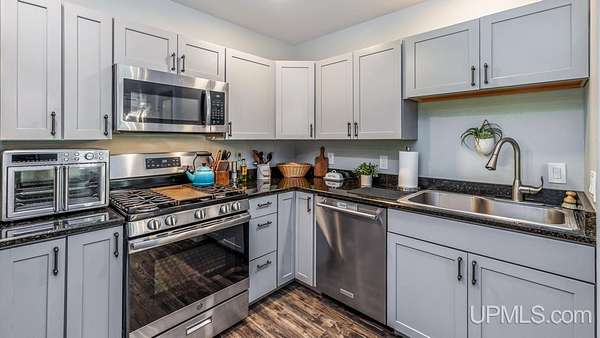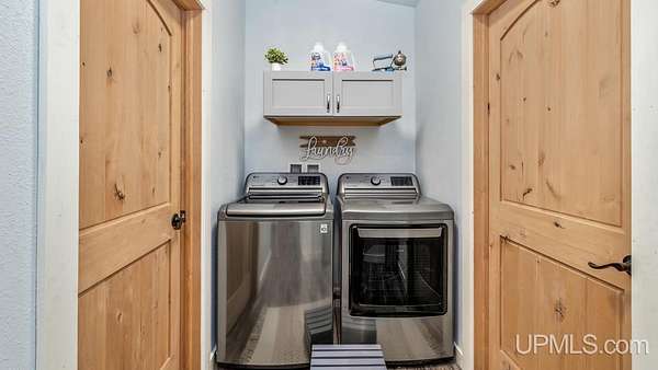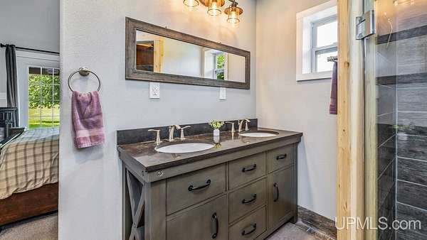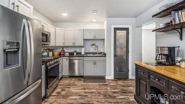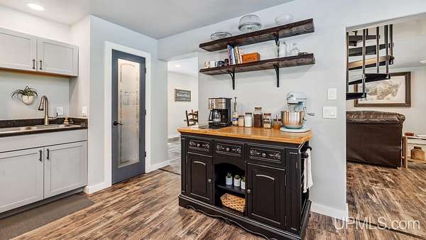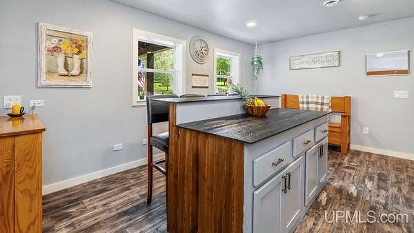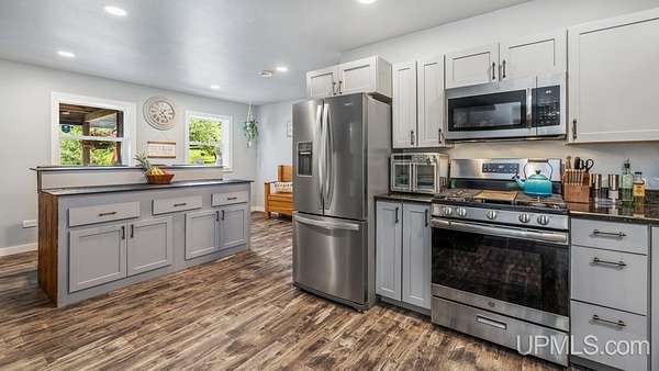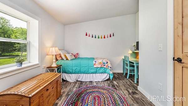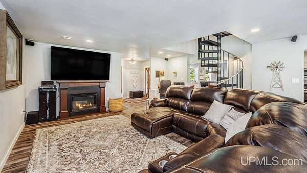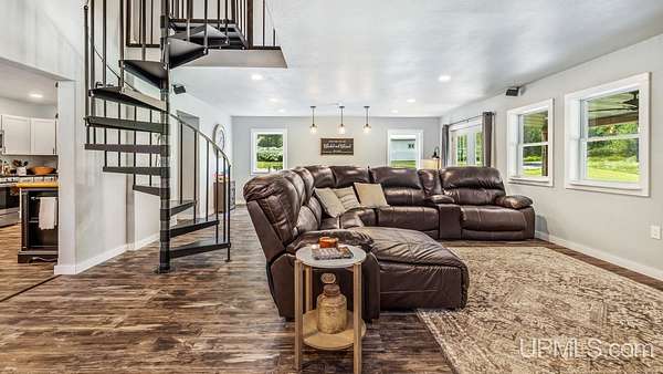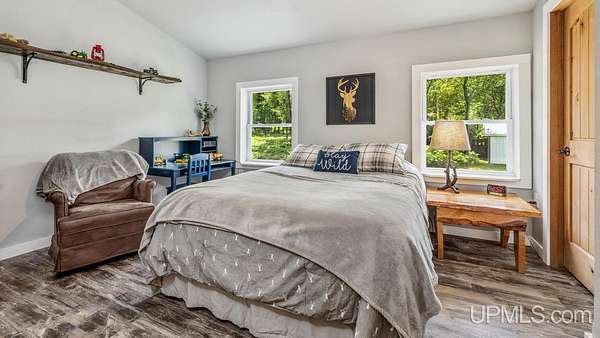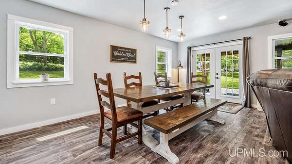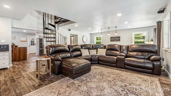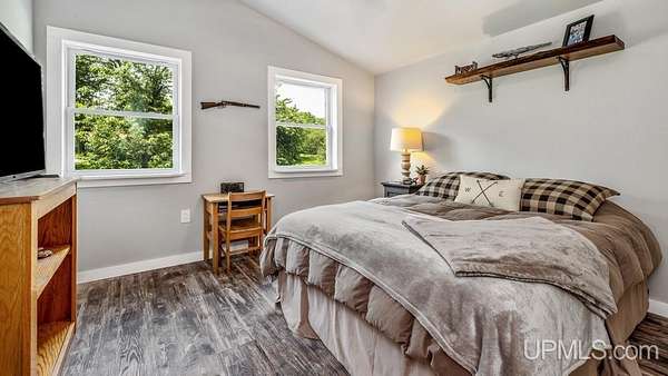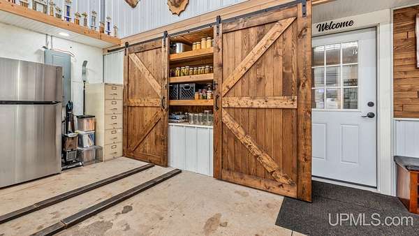 Welcome to an exceptional opportunity to own a newer, contemporary barndominium, hitting the market for the very first time! Nestled on a private 36 acre parcel just 10 minutes from Iron Mountain, this stunning 5 bedroom, 4 bathroom estate offers 2,440 square feet of meticulously designed living space perfect for your entire family. Step inside and discover an open-concept floorplan that seamlessly blends style and functionality. The heart of the home features a spacious kitchen complete with large island, walk-in pantry, and convenient coffee bar. From the living room, two sets of French doors lead to a covered backyard patio, an idyllic spot to unwind, listen to the birds, and watch deer and turkey meander by. Upstairs, you'll appreciate the ease of a second-floor laundry area. The stunning primary suite is a true sanctuary, boasting vaulted tongue-and-groove ceilings and a gorgeously tiled walk-in shower. Beyond the exquisite home, this property offers serene, rolling countryside views, mature oak forests, a small pond, and natural landscaping. Cultivate your passion for gardening in the extra-large fenced garden or start your own hobby farm with the existing 16x12 chicken coop. The heated 44x28 garage/workshop features impressive 16-foot walls and a 14x14 overhead door, providing ample space for all your vehicles, toys, and projects. Adventure awaits right from your doorstep with direct access to Blue Ox Trails for ATV riding and snowmobiling. Plus, you're just moments away from numerous lakes, rivers, and the beautiful Spread Eagle Barrens. You've worked hard to enjoy life's finest. Now is the time to own your very own slice of Northwoods heaven!