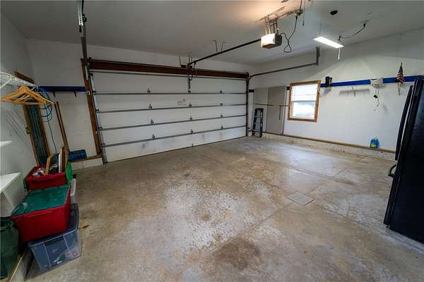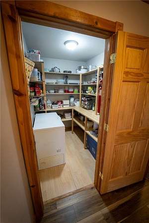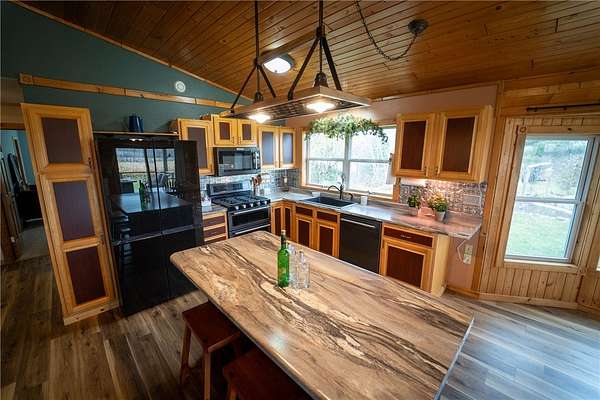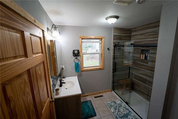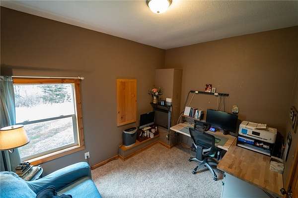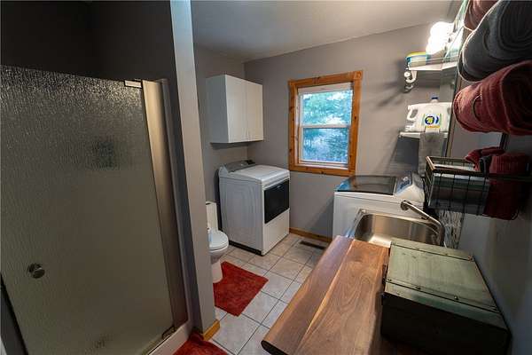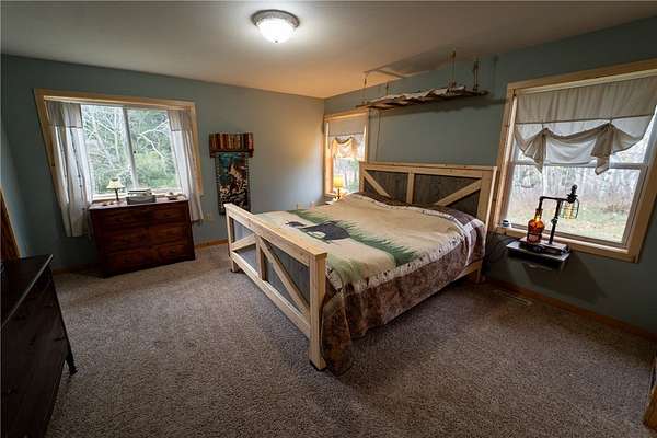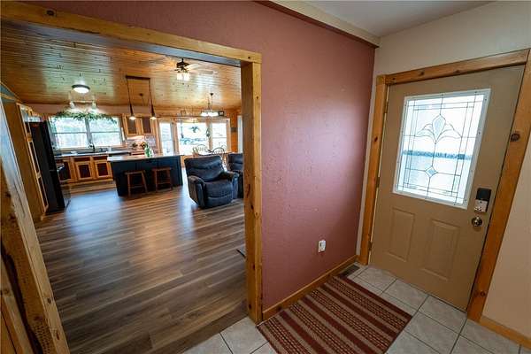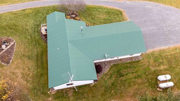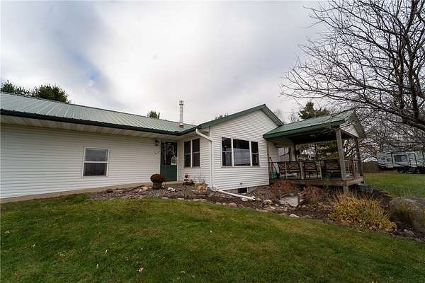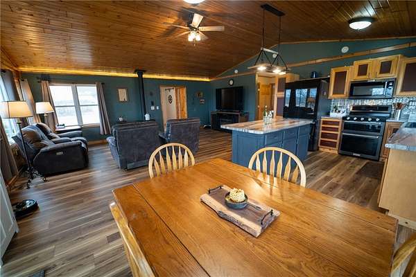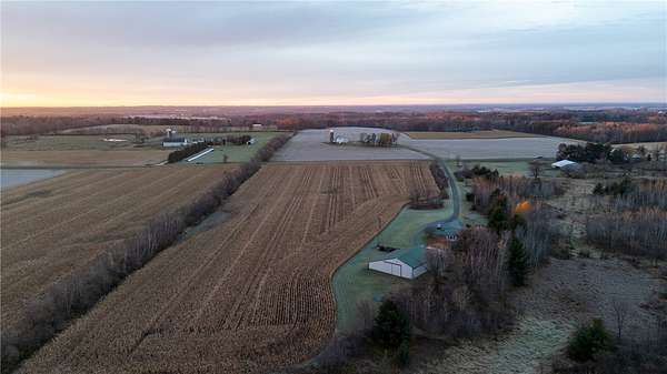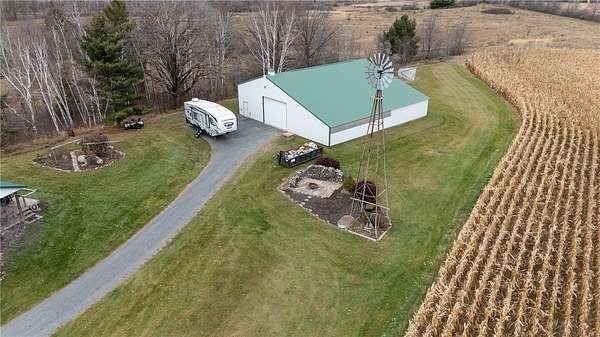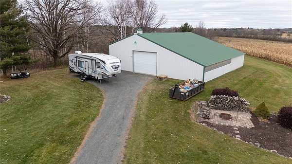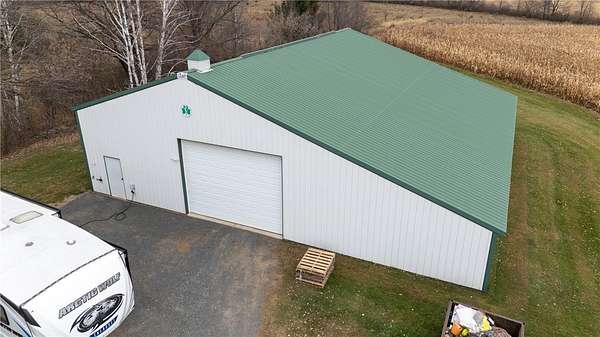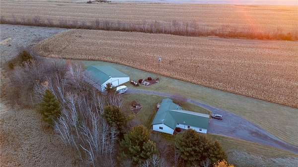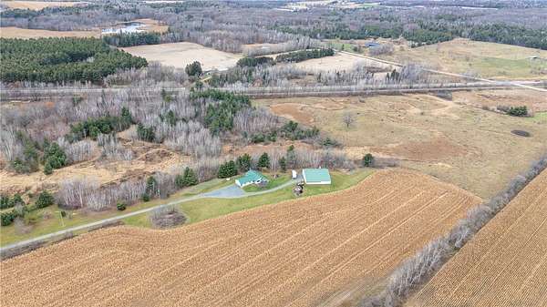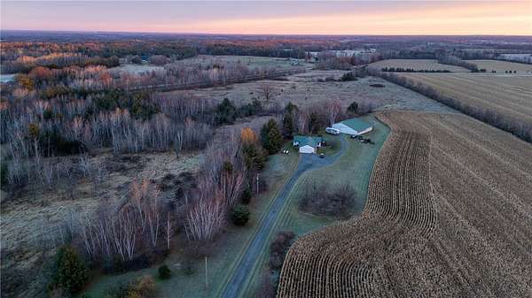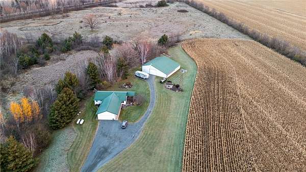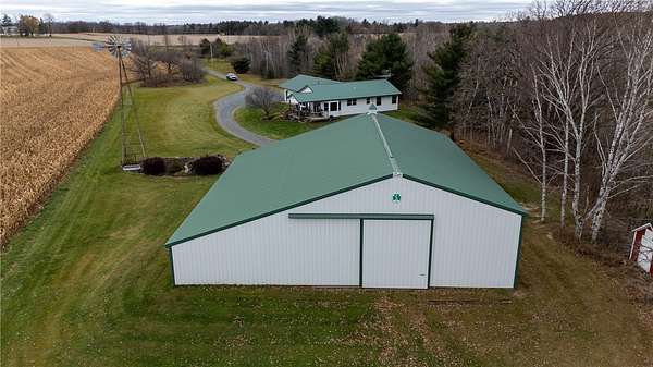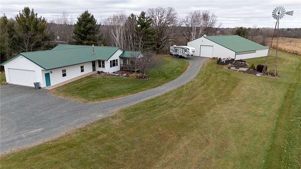 Discover peaceful country living on 20 private acres with this beautifully maintained 3-bedroom, 2-bath home. Designed for comfort and convenience, this property features handicap-accessible amenities and single-level living suitable for all ages. Step inside the spacious foyer with tile flooring that leads into a bright, open-concept living area showcasing vaulted ceilings, a free-standing gas fireplace, and luxury vinyl plank flooring throughout. The large primary suite includes a walk-in closet and direct access to a walk-through bath. A generous kitchen pantry, newer appliances, and a covered porch complete the home's practical layout. The attached 2-car garage is fully heated and insulated, providing year-round comfort and storage. Outside, an enormous pole shed provides endless possibilities - featuring a 20' x 44' insulated and heated workshop with overhead and pass-through doors on both ends for easy access. Nestled in a quiet, private setting surrounded by nature, this home offers both tranquility and functionality. Partial basement houses utilities and extra storage. A true country gem with all the modern amenities you need. Easy access to Snowmobile and ATV trail.