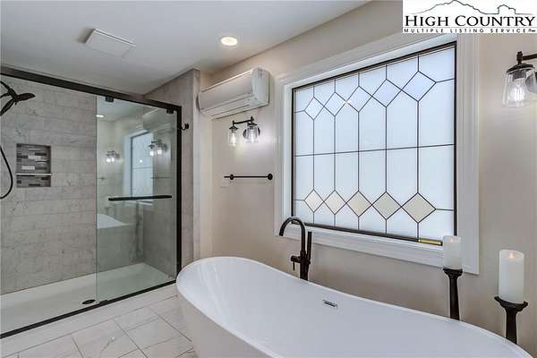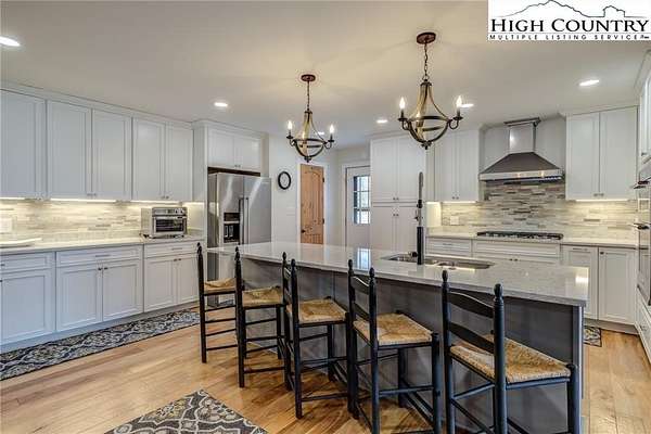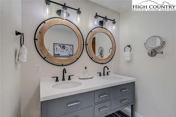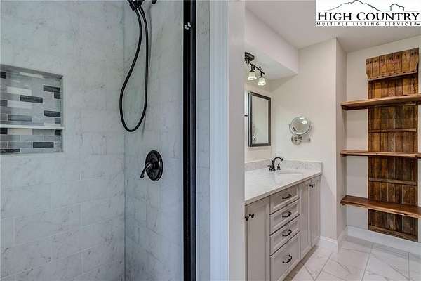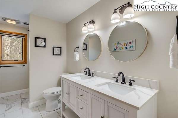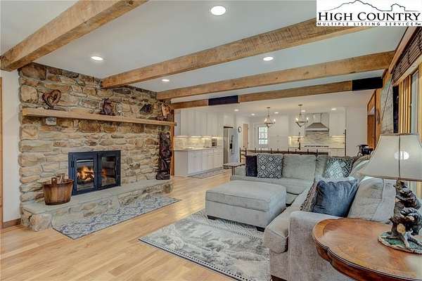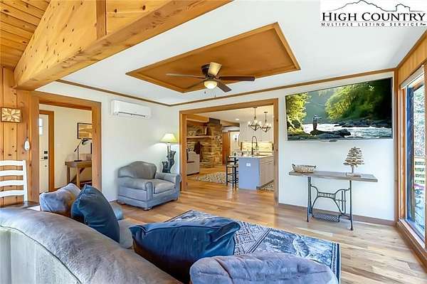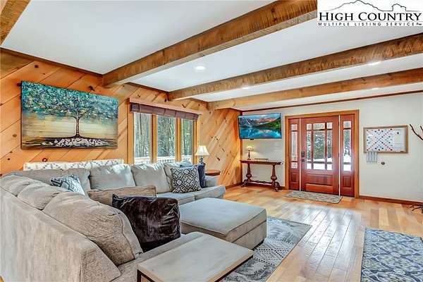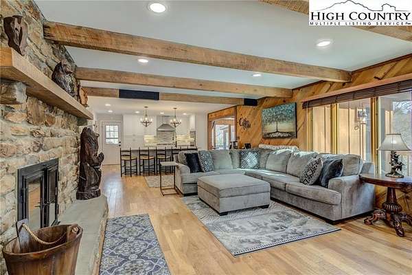 Experience breathtaking views of the Watauga River and nearby mountains while relaxing on 5.45 acres of pure cliffside bliss with over 430 feet of private river frontage! This beautiful 3-bedroom, 3.5-bath home was renovated in Spring 2023 and is the ultimate mountain retreat, delivering captivating views, hiking trails, 3 fire pits, a hot tub, game room, and so much more. Enter to a cozy front sitting room complete with a striking stone fireplace. The thoughtfully designed kitchen features custom cabinets, quartz countertops, stainless steel appliances, a walk-in pantry, and plenty of space to gather, meal prep, and entertain. The dining room and den are outfitted with expansive windows offering stunning views of the river below. Spend the days basking in the sun on your main floor decks or enjoy the breeze from your screened porch. The main floor includes two primary bedroom suites with ensuite bathrooms. One bedroom suite has a private deck and ensuite bath with a soaking tub, separate shower, double vanity with granite countertop, and a large walk-in closet. The 2nd bedroom suite has a walk-in closet and ensuite bath with a shower and double vanity. The laundry room, a half-bath, and an office with private entry are also on this level for one level living. Downstairs, you'll find a 3rd large bedroom with hallway access to a full bath with shower and double vanity. Downstairs also includes a bonus room outfitted with a custom bunk space, and a large game room decked out with ping pong, an arcade game, card table, and games galore! Outside on the covered patio, relax and soak in the hot tub while taking in the mountain and river views. Head down to the riverfront or the overlook point to enjoy a fire with the shimmering water in the background. Fantastic investment opportunity! Over $57k in 2024 gross rental income, despite an estimated $8k in lost revenue due to Helene. No home damage from Helene. The house sits up on the hill outside of the flood zone. The sellers worked with licensed contractors for renovations and to convert the old garage and laundry room into the front bedroom and bath but did not pull permits. A detached garage with 2nd floor heated area & unheated basement area could be finished out for more living space. Land is unrestricted. Plus, this peaceful retreat is just 17 min to Boone and 17 min to Watauga Lake! Launch your kayak from your backyard and enjoy river breezes all day long. Spend the afternoon exploring the nearby hiking trail that leads to a gorgeous waterfall or explore the exclusive trails on your property. Experience a quieter kind of wild - private waterfront living with all the serenity and none of the crowds. Come see this amazingly versatile mountain retreat!