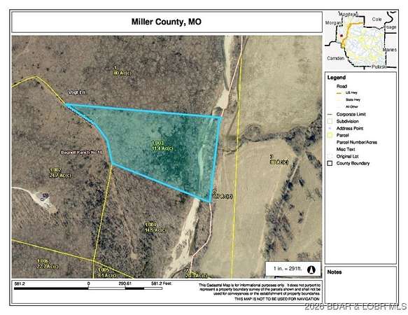 Country location close to Lake Ozark! Property features 11.4 Acres with a nice building Site already cleared, driveway cut in, storage building, Beautiful Views PLUS The Gravois Creek Runs along the property.....perfect! If you are looking for privacy but still want to be close to town... this is it! Only 4 +/- Miles from Hwy 54 and in the School of the Osage District. Grab your Blueprints and Build your dream home!