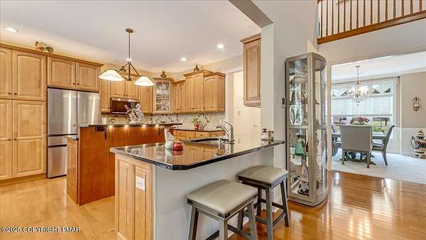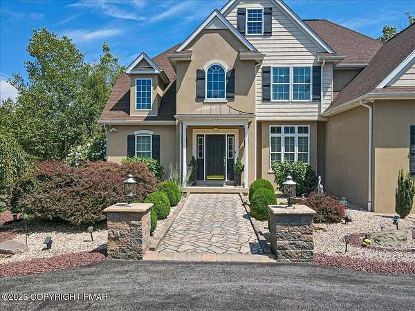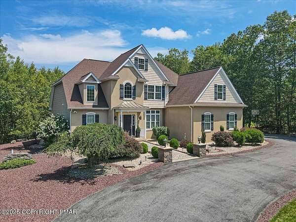 Est $4,684/moStunning 4BR/3.5BA custom home w/ mountain views & no HOA. Grand 2-story foyer w/ cathedral ceilings & hardwood floors. Chef's kitchen w/ granite, cherry island, maple cabinets, SS appliances, open to living room w/ stone propane fireplace & multi-level breakfast bar. Screened-in porch & Trex-style deck perfect for year-round entertaining. 1st-floor study/office w/ deck access. Luxurious primary suite features tray ceiling, walk-in closet, spa bath w/ soaking tub, tiled rain-head shower w/ body jets, & dual vanities. Upstairs: 2nd en-suite BR, 2 add'l BRs, bonus room/in-law suite w/ wet bar/mini-kitchen. Full walkout basement w/ high ceilings, smart home tech, whole-house generator, oversized garage, & ample guest parking.