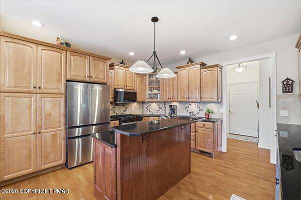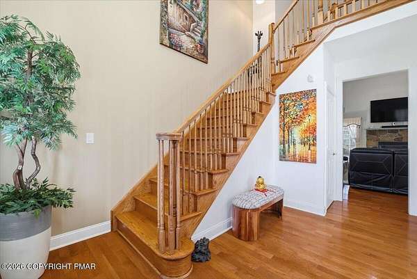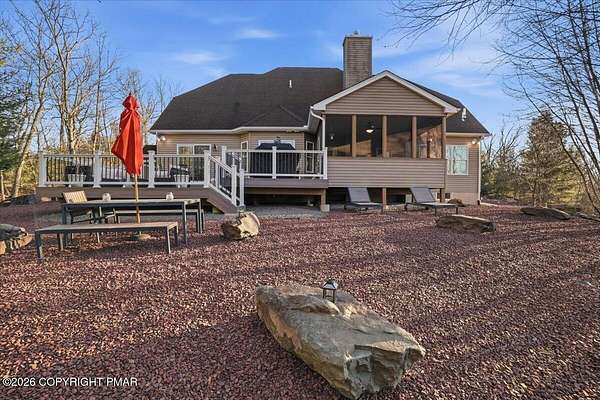 CUSTOM BUILT FOUR BEDROOM FOUR BATH COLONIAL situated on 2.66 ACRES with PRIVACY and Seclusion offering Incredible Elevated Mountain Views. Welcome to 389 JOANNE CT, Bartonsville, located in one of the area's most sought after neighborhoods. This Exceptional Well Cared for Home offers a FIRST FLOOR BEDROOM SUITE, SECONDARY IN-LAW SUITE, Gourmet Kitchen with Stainless Steel Appliances and Granite Countertops, Stone Propane Fireplace, Hardwood Floors, A Large Bonus Room with Wet Bar, FULL HOME Self Start GENERATOR, SMART HOME FEATURES and MORE! A Massive Unfinished Basement offers tremendous potential with high ceilings, fully insulated with full egress and windows. The backyard offers the peacefulness of Serenity and Seclusion offering Expanded Outdoor Living Space that seamlessly transitions from the main living area with an Oversized Screened in Porch and Gorgeous Multi-Tiered TREX Deck where you can enjoy INCREDIBLE Sunset Views overlooking Camelback Mountain. Located in the Heart of the Poconos with Great Commuter Location minutes from RTE 611/RTE 80 and many local attractions including Skiing, Golf Courses, Casinos, Restaurants and shopping and the very best of what the Pocono Mountains has to offer. Located just 90 Miles from New YORK and Philadelphia with NO ASSOCIATION FEES. Make an appointment to see this Exceptional home today. This one will not last long! (digital enhancements used in some outdoor photos)