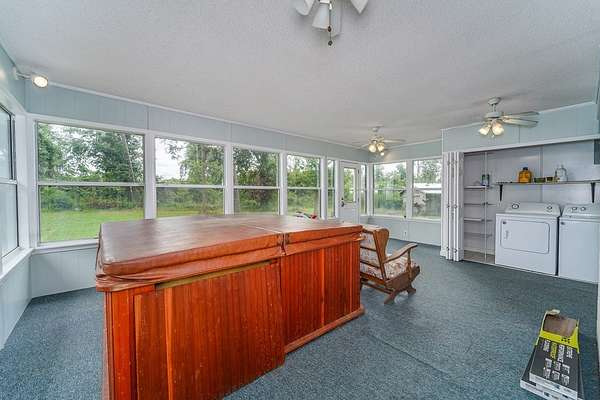 - Ceiling Fan, Dirt Drive, Fireplace-Wood, Hot Tub, Pantry, Ponds, Shop, Wood Floors