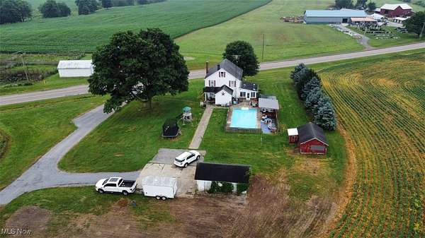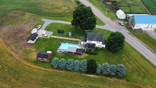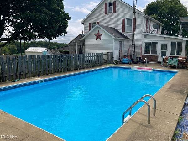 Two-Story, Vinyl-Sided Home with Four Bedrooms, Inground Pool, Outstanding Setting, 2.4 Acres, Outbuildings. Unity Twp., Columbiana Co., Mineral Rights Transfer. Live Onsite with Online Bidding Available. ABSOLUTE AUCTION, all sells to the highest bidder on location. ONLINE BIDDING BEGINS TUESDAY, AUGUST 5, 2025, at 12:00 PM, and AUCTION LIVE ON-SITE BIDDING WILL BEGIN THURSDAY, AUGUST 7, 2025, at 5:30 PM. Real Estate. Two-story, vinyl-sided farmhouse. Main level features an oak kitchen with refrigerator, pantry, center island, formal dining room with a Brunco wood burner, family room with access to sunroom, plus study or office. Two main-level bathrooms, four second-level bedrooms. Full basement with updated breaker electric. FA oil heat plus Brunco wood burner. Shower bath, outside entrance, drilled water well, and private septic system. Vinyl replacement windows, attic. Inground swimming pool with small pavilion. Older one-car garage plus other outbuilding. 2.4 acres with beautiful views of the countryside. Chip & seal driveway. You'll like the setting. Currently rented month to month for $800 plus utilities. Home needs updating. The home will be open sale day only, starting at 4:00 PM.