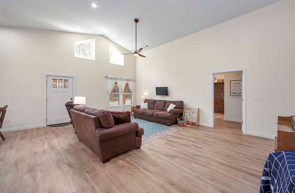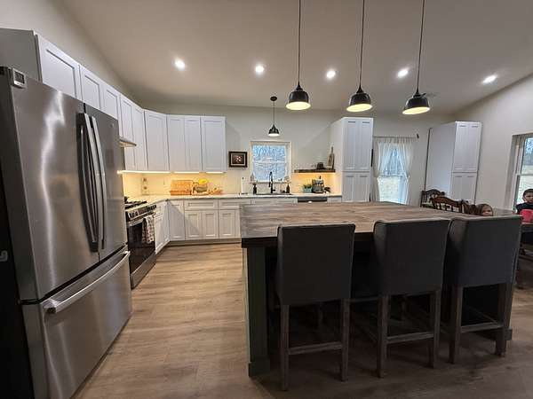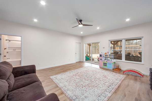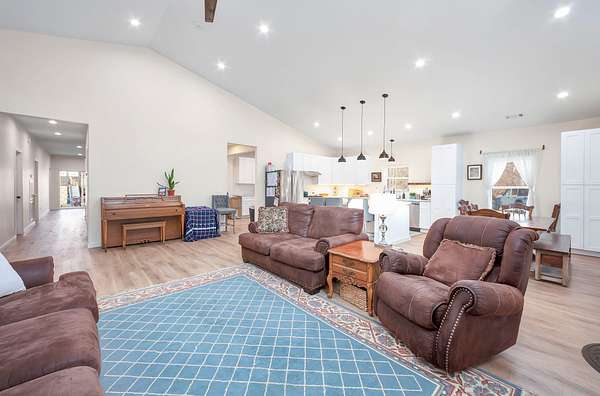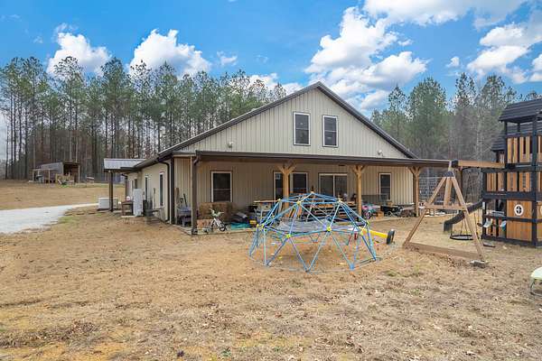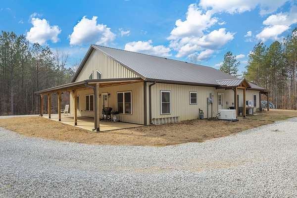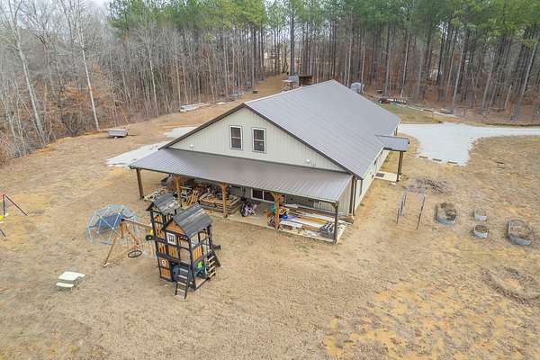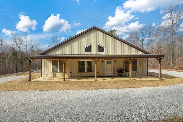 Stunning new 3,156 sq ft barndominium set on 7.86 acres, thoughtfully designed to offer space, functionality, and versatility. This open-concept home features up to 5 bedrooms if needed, or 3 BR and an office or bonus room, 2.5 bathrooms, two living areas, a spacious kitchen, a dedicated office, and a utility room on the main level, along with a large upstairs bonus (bedroom) room complete with an additional full bathroom. Quality construction and upgrades include a tankless water heater, whole-home Generac generator, a secure storage/tornado room beneath the staircase, and abundant storage throughout. Outdoors, the property continues to impress with a 10x10 barn featuring two stalls, a tool shed, and a fenced area ideal for livestock or pets. A 50-amp RV hookup is conveniently located beside the home. For future expansion, the property offers potential for a shop at the rear, with a separate underground 220-amp electrical stub already run from the transformer. The land is accented by a beautiful seasonal creek and provides excellent hunting and recreational opportunities, all while offering privacy and usability. This exceptional property offers far more than can be captured in a single description. Click on the listing webpage for virtual tours and more information. Call today!