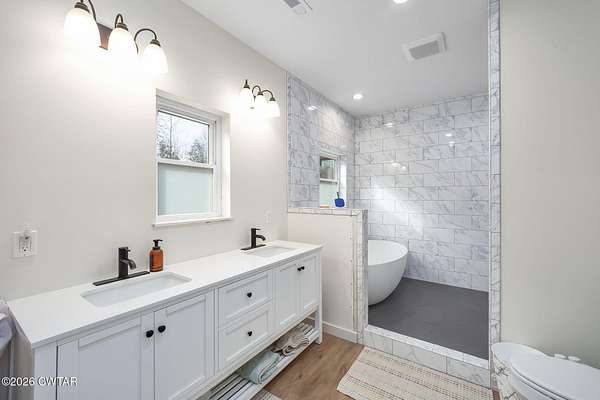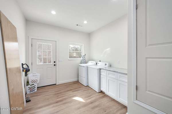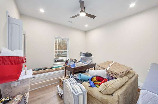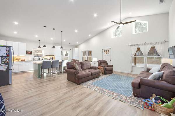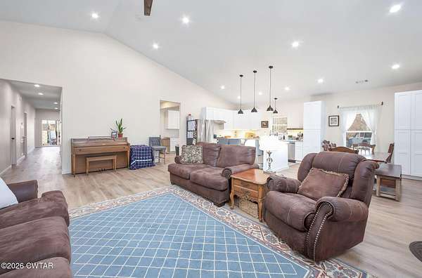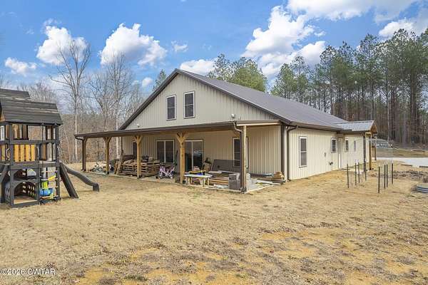 Stunning new 3,156 sq ft barndominium set on 7.86 acres, thoughtfully designed to offer space, functionality, and versatility. This open-concept home features 3 bedrooms, 2.5 bathrooms, two living areas, a spacious kitchen, a dedicated office, and a utility room on the main level, along with a large upstairs bonus room complete with an additional full bathroom. Quality construction and upgrades include a tankless water heater, whole-home Generac generator, a secure storage/tornado room beneath the staircase, and abundant storage throughout. Outdoors, the property continues to impress with a 10*10 barn featuring two stalls, a tool shed, and a fenced area ideal for livestock or pets. A 50-amp RV hookup is conveniently located beside the home. For future expansion, the property offers potential for a shop at the rear, with a separate underground 220-amp electrical stub already run from the transformer. The land is accented by a beautiful seasonal creek and provides excellent hunting and recreational opportunities, all while offering privacy and usability. This exceptional property offers far more than can be captured in a single description. Click on the listing webpage for virtual tours and more information. Call today!