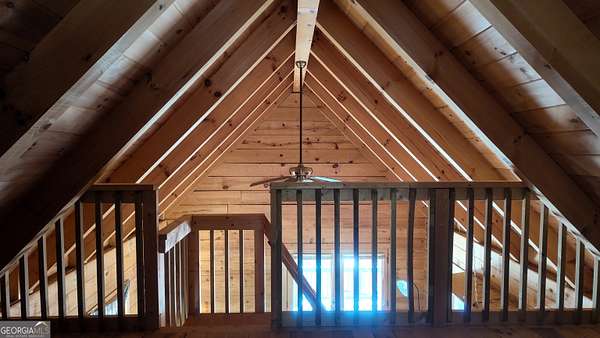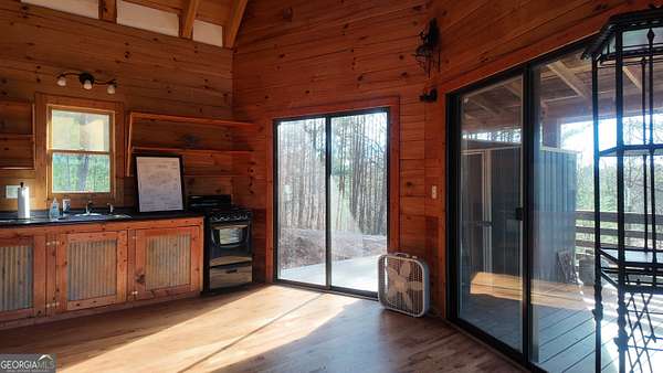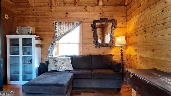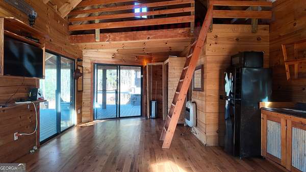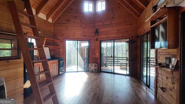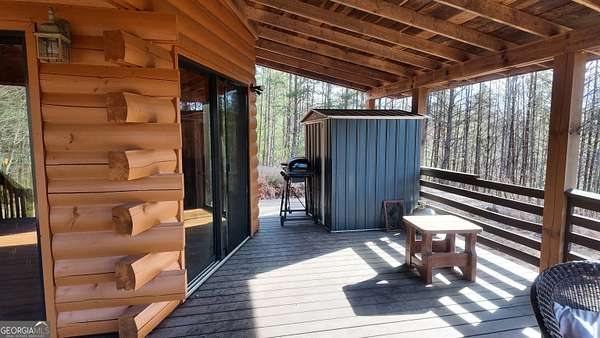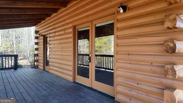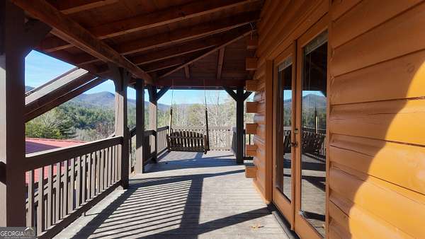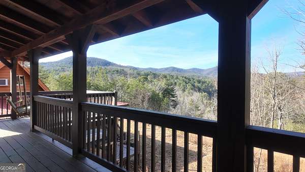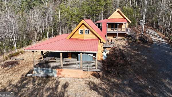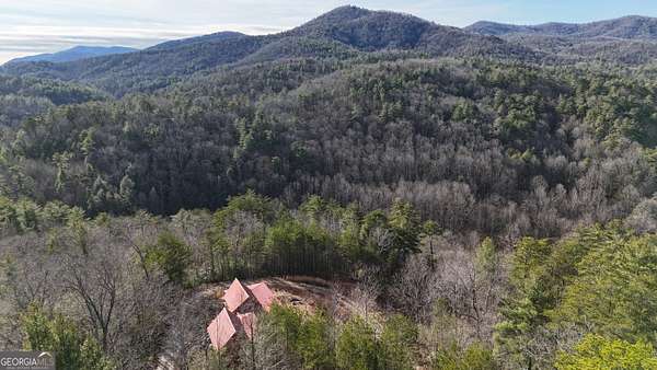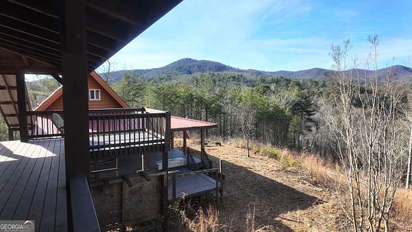 Two separate true-log cabins with year-round mountain views on 7+ acres just north of downtown Helen with long frontage on USFS land that adjoins Tray Mountain Wilderness Area. For those seeking the sought-after "million dollar" views in northeast Georgia, this property affords the opportunity to own an extremely private and secluded cabin site(s) on higher ground that overlooks the upper Chattahoochee River watershed. Looking north are year-round views of Crumbly Knob (3011 ft above sea level) and the ridge that runs to Tray Mountain and the Appalachian Trail. The "upper" cabin has a separate private bedroom, common bath, great room/kitchen combo, and overhead loft. The "lower" cabin has a common bedroom/great room, common bath, kitchen area w/appliances, and overhead loft. Each of the two adjoining log cabins have all the rustic feel of a mountain getaway with the modern conveniences of high speed internet, private water/well, minimalist kitchens, extra overhead loft/bunk/sleeping spaces, and enough accommodations for weekend stays or longer retreats. This property is a great outpost for enjoying all the outdoor recreation available to you in northeast Georgia, while providing quick access (10 minutes!) to downtown Helen where you can enjoy tubing on the Chattahoochee, shopping, and restaurants, and a short trip to Unicoi lake and Anna Ruby Falls.
