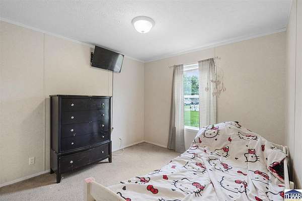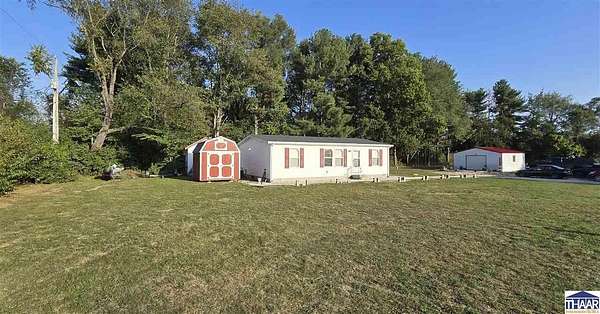 Welcome to this charming, 3 bedroom 2 bath ranch-style manufactured home nestled on a quiet 1.61 acre lot in southern Vigo County. Offering a blend of comfort and convenience, this is a perfect space for those seeking peace only minutes from Terre Haute. The brand new flooring and open concept layout creates a welcoming atmosphere and the eat-in kitchen is perfect for casual meals. The master bedroom is complete with a private ensuite and a walk-in closet. Two additional bedrooms offer versatility for office or rec space. The large yard is perfect for outdoor activities such as campfires, gardening or raising a flock of chickens. This property also features a brand new shed and detached garage/barn on a thick slab that provides endless possibilities. This home is a rare find in a desirable location. Come see all it has to offer!